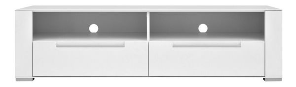 Nízký a široký TV stolek nebo skříňka, který svým jednoduchým stylem ideálně zapadne do Vaší obývacího pokoje. Stolek obsahuje 2 otevřené police a 2 praktické zásuvky. Na zadní stěně otevřených polic je praktický otvor pro kabely.