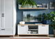 Obývací pokoj se neobejde bez stylového TV stolku. TV stolek z modelové řady Haga se vyznačuje přitažlivým moderním designem, který prosvětlí prostor a dodá mu lehkost. Je rozdělen na tři části. Po stranách se nacházejí skříňky. Uvnitř každé se nachází jedna police. Prostřední část je poličkou rozdělena na dva otevřené úložné prostory. Ty jsou vhodné k umístění herní konzole, nebo jiné elektroniky. Dvířka se otevírají pomocí praktických úchytů.