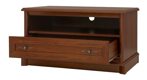 ZobrazitTV stolek krásného rustikálního designu, který bude skvostným doplňkem vašich obývacích pokojů. Nechybí mu otevřená polička pro vaše AV zařízení a zásuvka na odložení oblíbených DVD filmů. Úchyty na zásuvce jsou ozdobně kované.