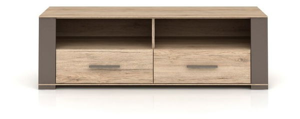 TV stolek pod televizor, který má přitažlivý design, moderní prvky a zejména praktické využití. TV stolek má dvě otevřené poličky vhodné pro vaše AV zařízení a dvě zásuvky, do kterých si můžete umístit knížky, DVD filmy a jiné drobnosti. Front TV stolku má na okrajích ozdobné pruhy v barevném provedení láva.