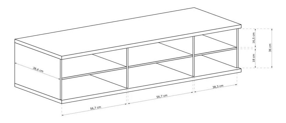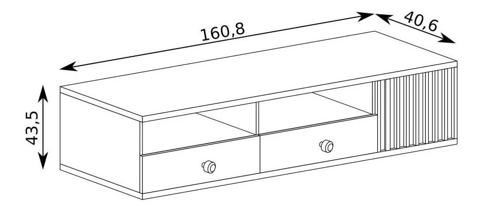 Jednoduchá TV skříňka v moderním provedení s černým čelem s lištami. Korpus nábytku je lamino deska v barvě Artisan. Vejde se do ní spousta věcí, které jsou potřebné v obýváku u televize. Skříňka má dvě výsuvné zásuvky s tichým zavíráním.