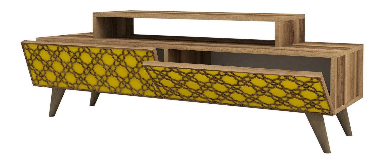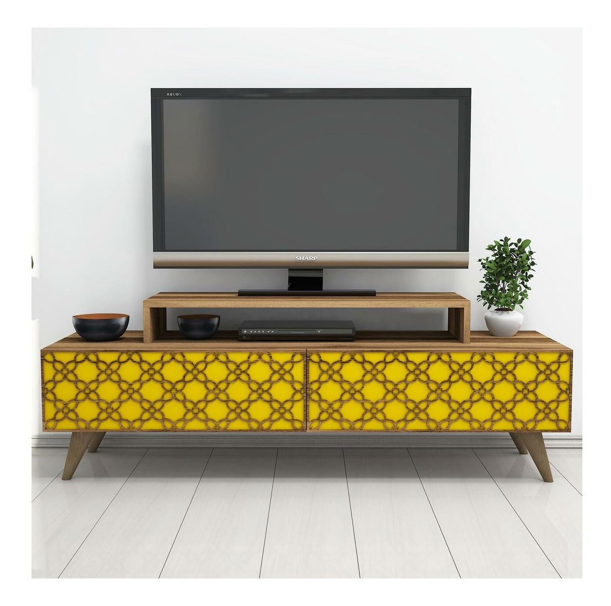 TV stolek/skříňka Clementine (ořech + žlutá)