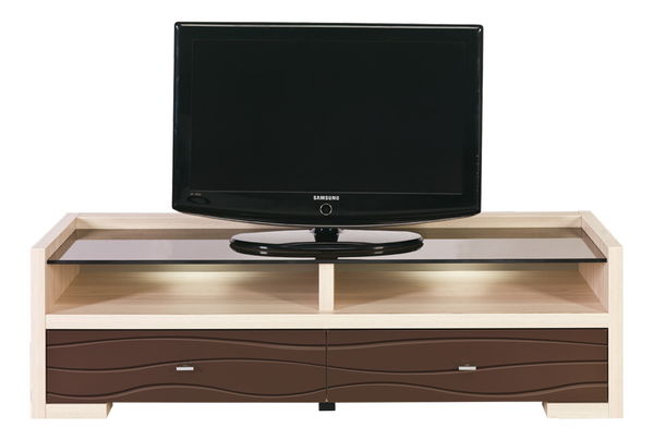 Moderní TV stolek je neodmyslitelnou součástí každého obývacího pokoje. Nabízí potřebné místo pro uložení audio/video techniky. Ve spodní části jsou dvě zásuvky. Horní deska je vyrobena ze skla. Možnost dokoupení doplňkového osvětlení.