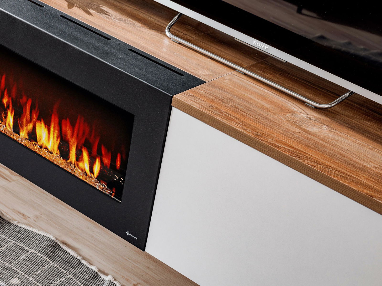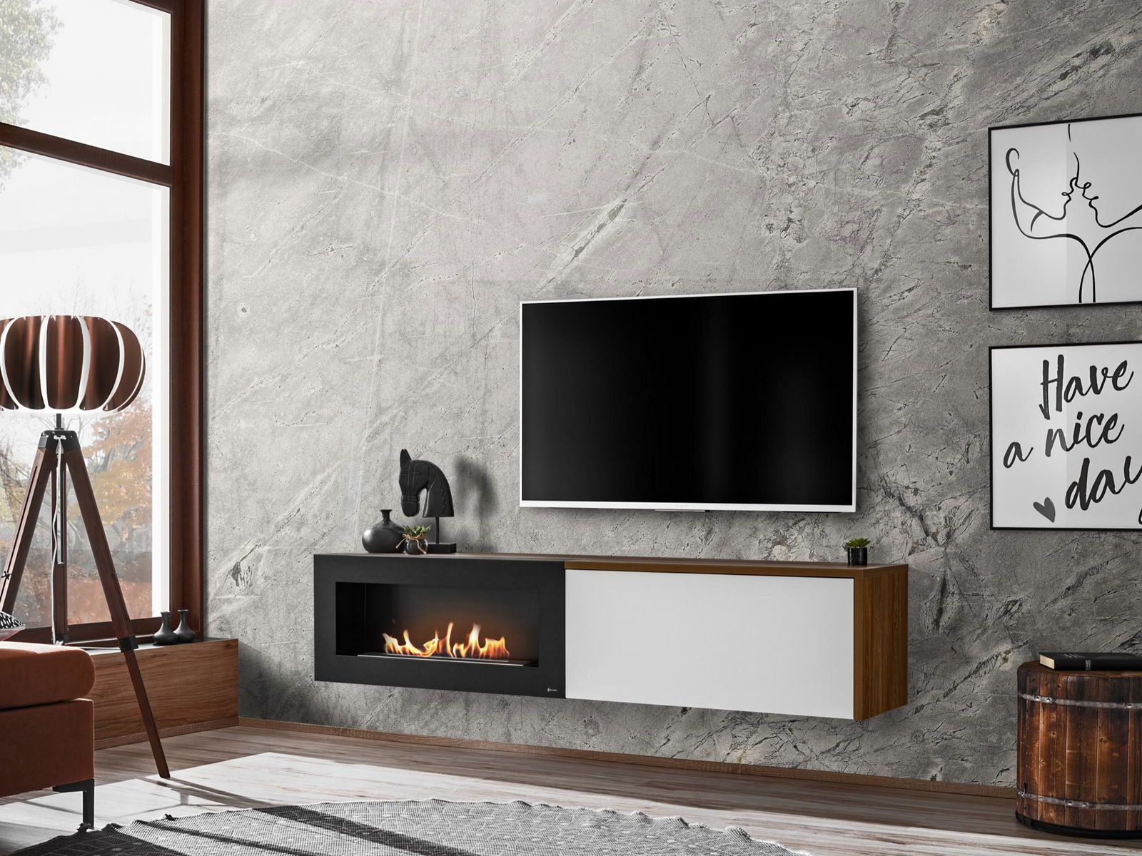 Tv stolek/skříňka Dalton (dub sterling + bílá matná) (s bio krbem)