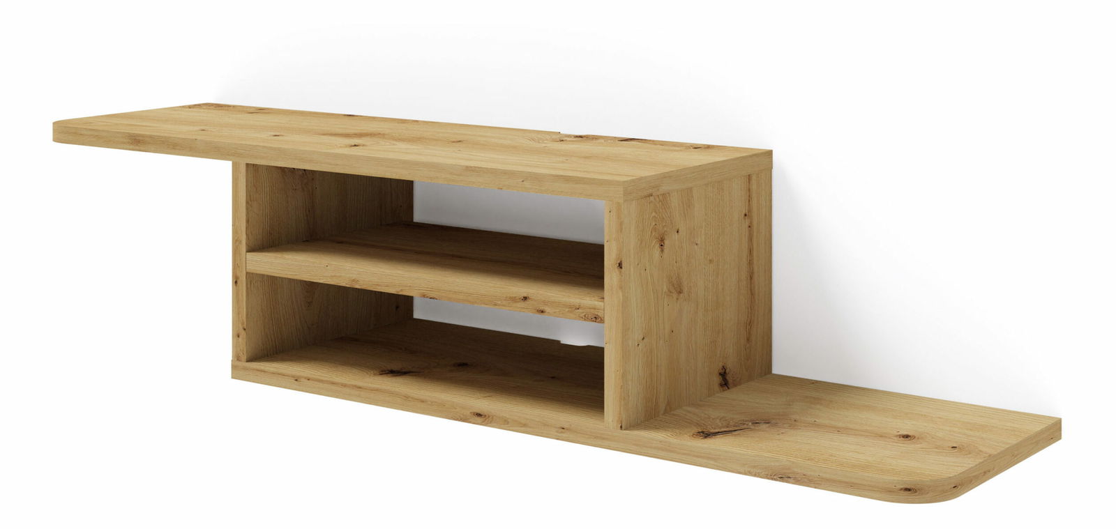 ZobrazitKompaktní TV skříňka je ideálním řešením pro ty, kteří mají omezený prostor. Díky svým malým rozměrům je mimořádně funkční a praktická. Ve středu má dva výklenky, které poskytují dostatečný prostor pro uložení různých multimediálních zařízení, dálkových ovladačů, knih nebo dekorací. Nábytek je navíc vybaven dvěma otvory pro kabely, což usnadňuje organizaci kabelů a udržování pořádku. Vyznačuje se také zaoblenými bočními stranami, které dodávají jemný a atraktivní vzhled a činí používání police bezpečnějším. Slouží jako TV stolek a perfektně se hodí do minimalistických trendů. Pevná konstrukce a kvalitní materiály nejen vypadají esteticky příjemně, ale zaručují také odolnost a stabilitu.