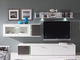 TV stolek s jedněmi dvířky vlevo a dvěma zásuvkami vpravo. Zásuvka je se samodotahem a brzdou. Mezi zásuvkou a dvířky se nachází vertikální integrovaný LED pás. Na výběr máte z bílé nebo modré barvy.