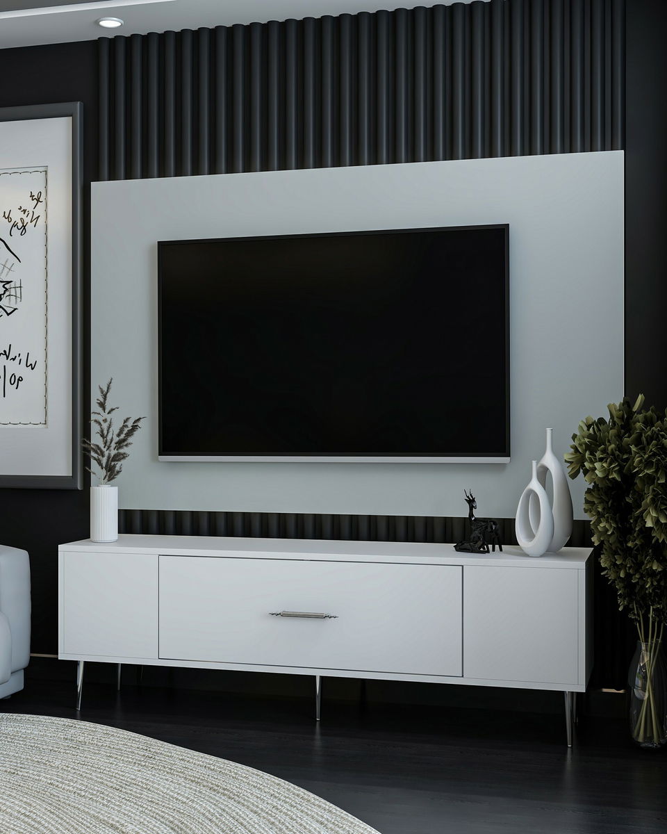 TV stolek/skříňka Dekondino (bílá + stříbrná)