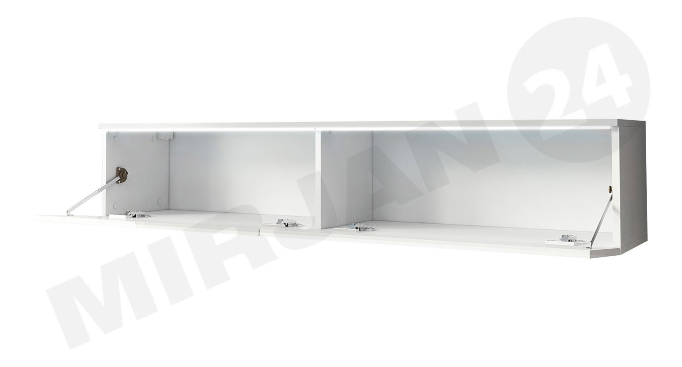 TV skříňka Dilune 140 je návrh nástěnné TV skříňky, která je k dispozici v moderní barvě a odkazuje na současné interiérové trendy. Chcete-li ještě více zdůraznit její moderní charakter, můžete si vybrat osvětlení LED, které je k dispozici jako doplňková možnost. Kromě estetických vlastností je TV skříňka také funkční a bude se hodit pro uskladnění bytových doplňků.