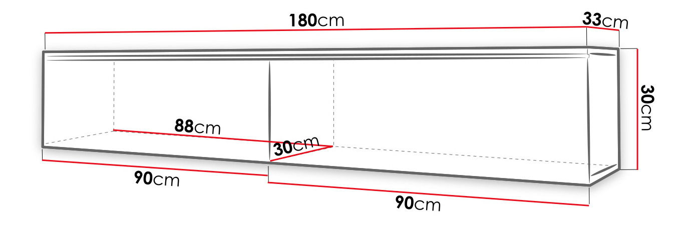 šířka 180 cm, výška 30cm, hloubka 33 cm