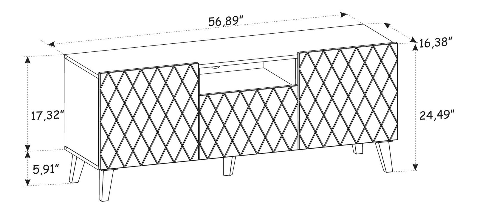 ZobrazitZařiďte si obývací pokoj v luxusním stylu s tímto elegantním TV stolkem/skříňkou Dintanna 145. Vysoký 62 cm, široký 145 cm a hluboký 42 cm, tento černý stolek s lesklým černým povrchem je ideální pro vaši televizi. Okouzlí vás jeho ozdobné frézování na dvířkách a robustní nožičky. Se třemi dvířky a menší otevřenou poličkou vám poskytuje dostatek úložného prostoru pro vaše mediální zařízení a další věci.