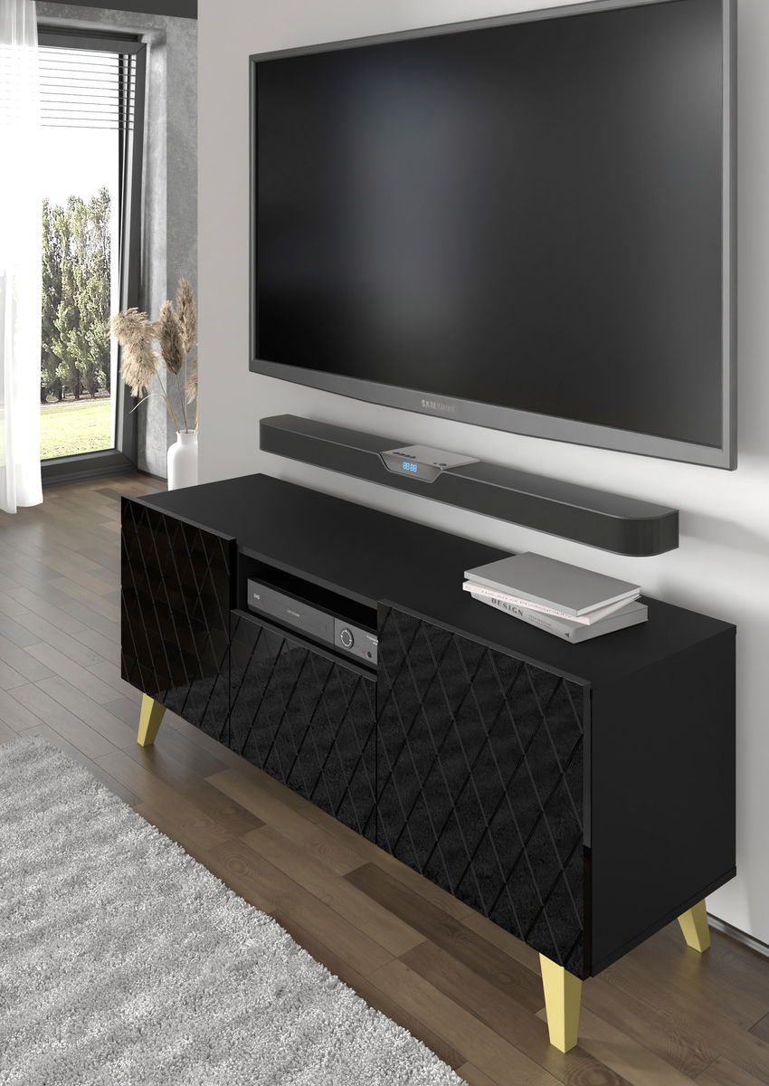 TV stolek/skříňka Dintanna 145 (černá + lesk černý)