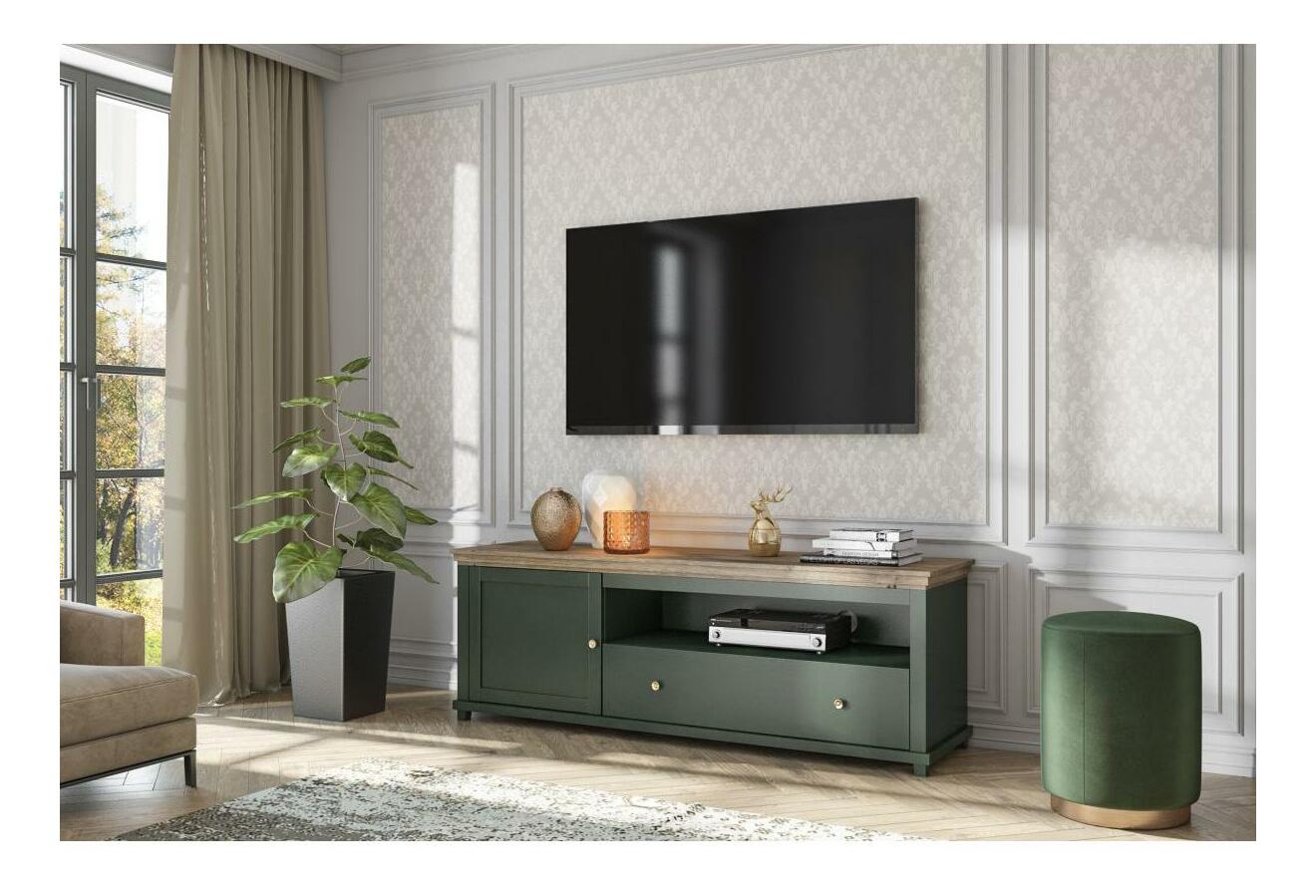 TV stolek/skříňka Elvina Typ 40 (tmavě zelená + dub lefkas)