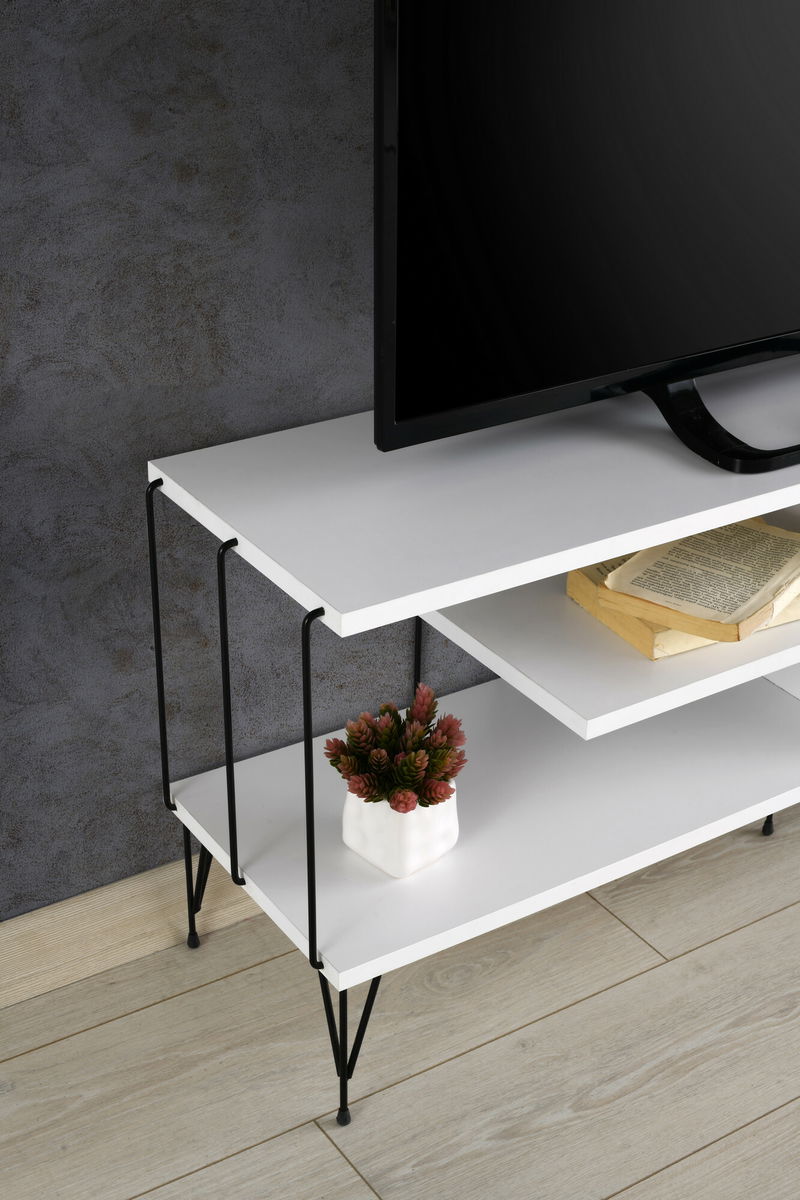 TV stolek/skříňka - Elza (Bílá) je stylový a praktický nábytek pro váš obývací prostor. S výškou 44 cm, šířkou 120 cm a hloubkou 30 cm je dostatečně velký pro umístění vašeho televizoru a dalších audiovizuálních zařízení. Jeho bílá barva přispívá k modernímu a elegantnímu vzhledu. Tento stolek/skříňka poskytuje dostatek úložného prostoru v podobě policek a zásuvek, ve kterých můžete uspořádat své DVD, ovladače a další věci. Elza je vyrobena z kvalitního materiálu, což zaručuje její trvanlivost a odolnost. Díky svému designu a funkčnosti je to ideální volba pro ty, kdo hledají vhodné řešení pro svůj televizor a příslušenství.