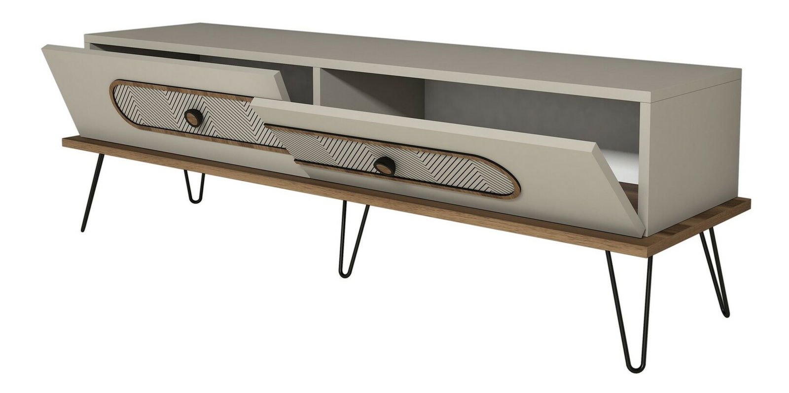 ZobrazitTV stolek/skříňka Enrico (Krémová) je ideálním doplňkem pro váš obývací pokoj. S jeho výškou 45 cm, šířkou 145 cm a hloubkou 40 cm poskytuje dostatek prostoru pro váš televizor, herní konzoli a další zařízení. Jeho krémová barva dodává elegantní a moderní vzhled, který se hodí k jakémukoli interiéru. Současně je stolek/skříňka vyroben z kvalitního materiálu, který zaručuje dlouhou životnost a odolnost vůči poškození. Tento TV stolek/skříňka Enrico (Krémová) je skvělou volbou pro ty, kteří hledají funkční a stylový nábytek pro svůj domov.