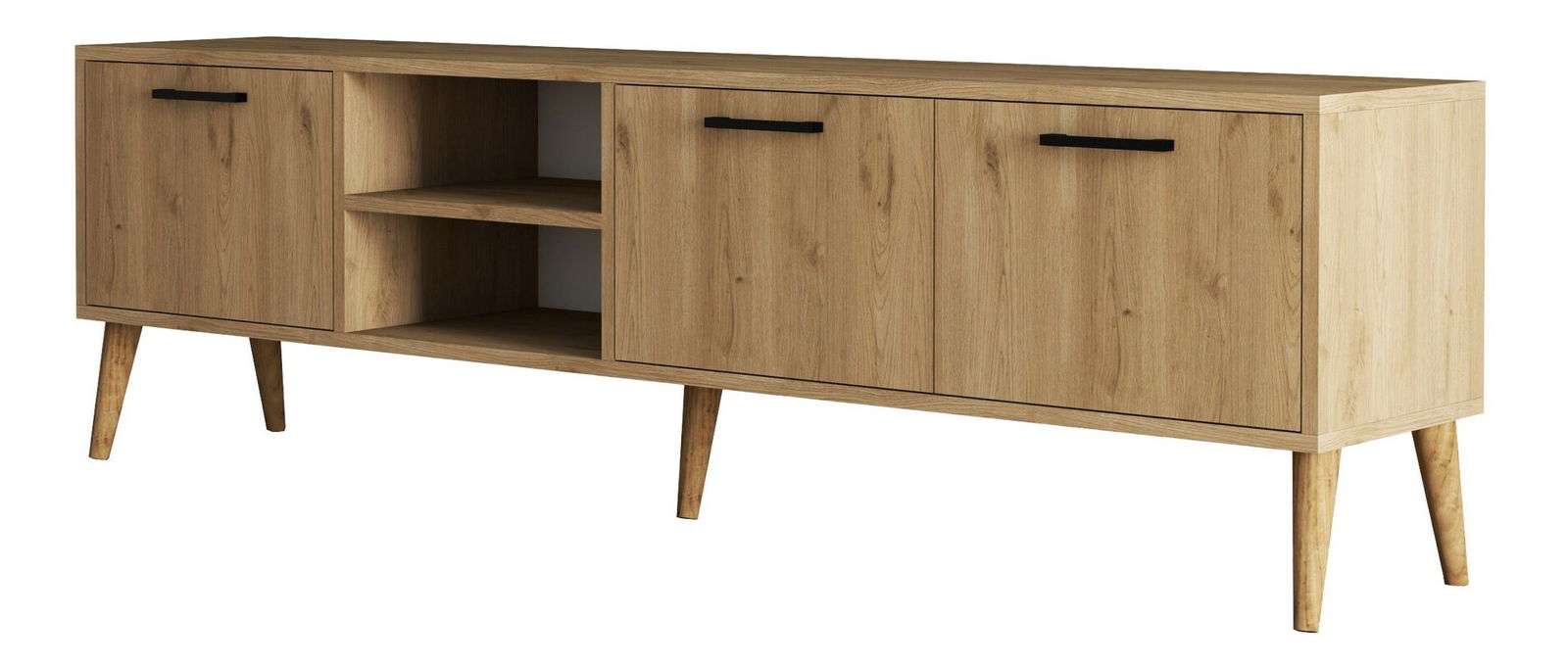 TV stolek/skříňka - Essex (Dub) je vynikající kus nábytku, který nabízí skvělé řešení pro váš obývací pokoj. S výškou 53 cm, šířkou 180 cm a hloubkou 35 cm poskytuje dostatek místa pro váš televizor a další zařízení. Jeho stylový design v kombinaci se dřevem Dub mu dodává elegantní vzhled, který zapadne do jakéhokoli interiéru. Skříňka je vybavena praktickými úložnými prostory, kde můžete uložit svá audiovizuální zařízení, knihy nebo dekorační předměty. TV stolek/skříňka - Essex (Dub) je vyroben z kvalitních materiálů, což zaručuje jeho odolnost a dlouhou životnost. Nechte se okouzlit tímto funkčním a stylovým nábytkovým kouskem, který přinese do vašeho domova eleganci a organizovanost.