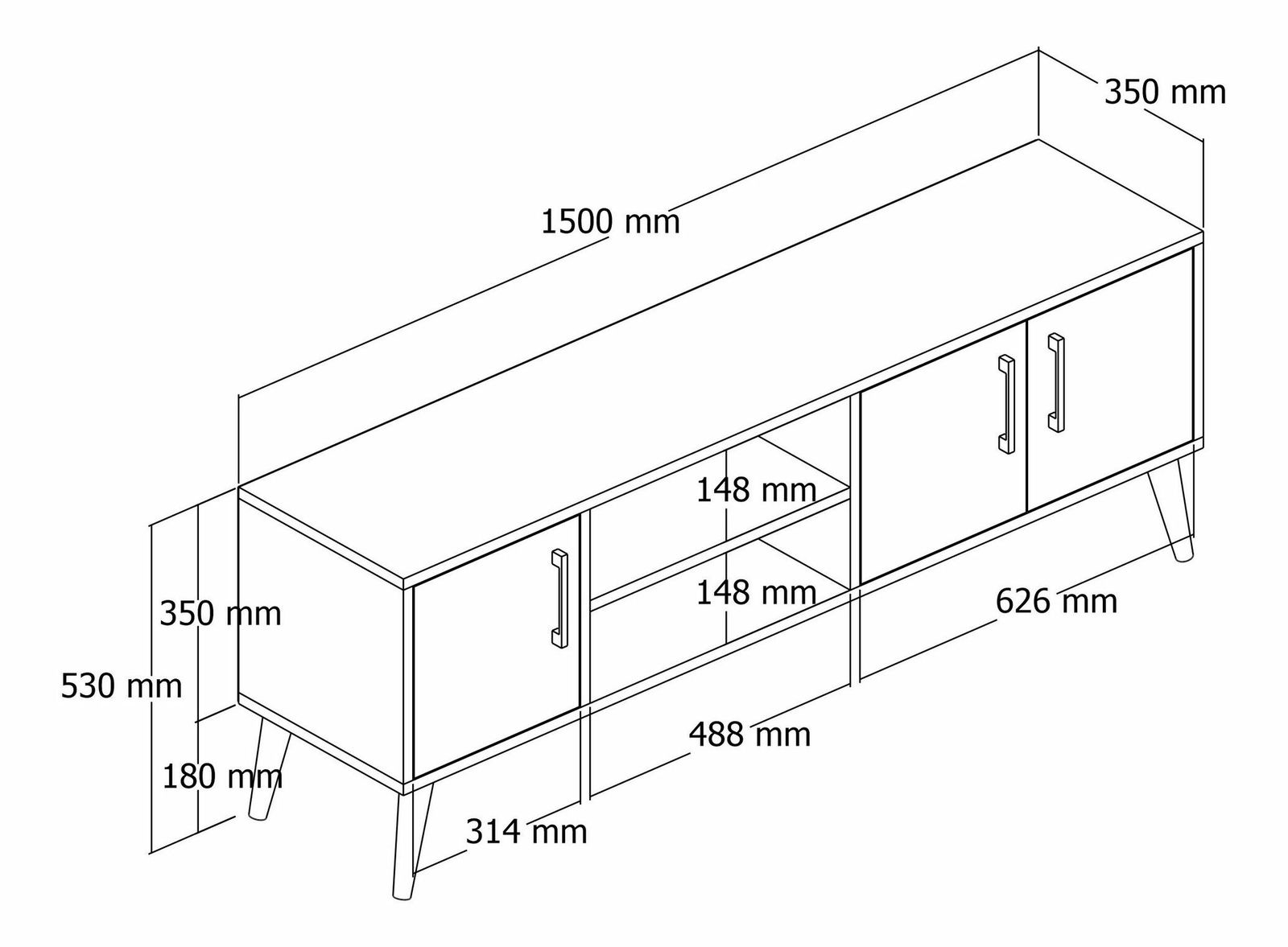 šířka: 150 cm výška: 52 cm hloubka: 34 cm