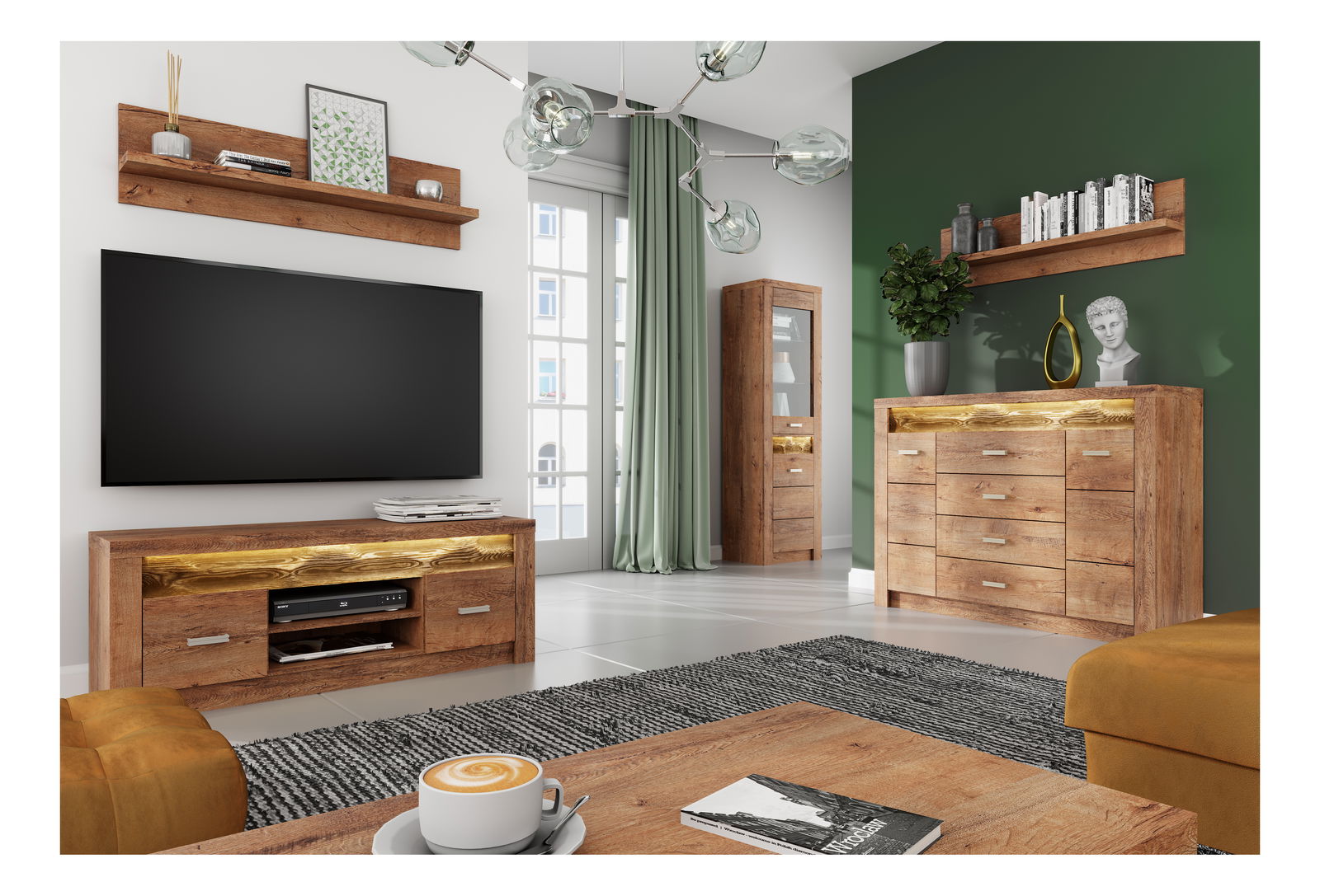 TV stolek/skříňka Indie 10 (s LED osvětlením) (jasan světlý) *výprodej