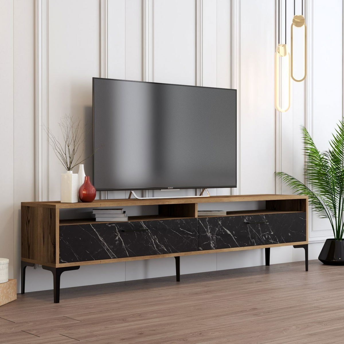 TV stolek/skříňka Irma 2 (ořech + černý mramor)