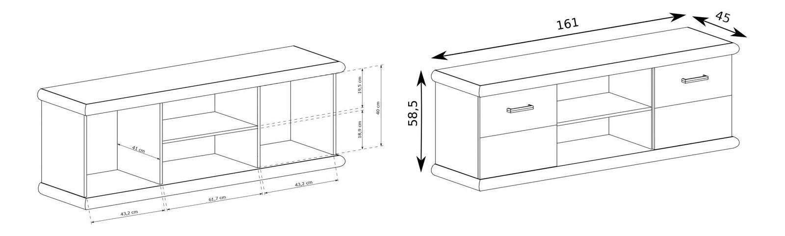 ZobrazitTV skříňka z kolekce Kenny, která dodá interiéru klidnou atmosféru a překvapí originálním designem. Skříň má jednu viditelnou polici a dvě skříňky, ve kterých je prostor ideální pro uspořádání vašich věcí. Velká deska je vhodná pro vystavení mnoha ozdob, suvenýrů či knih, skvěle se na ní bude vyjímat televizor, rádio a mnoho dalších zařízení.