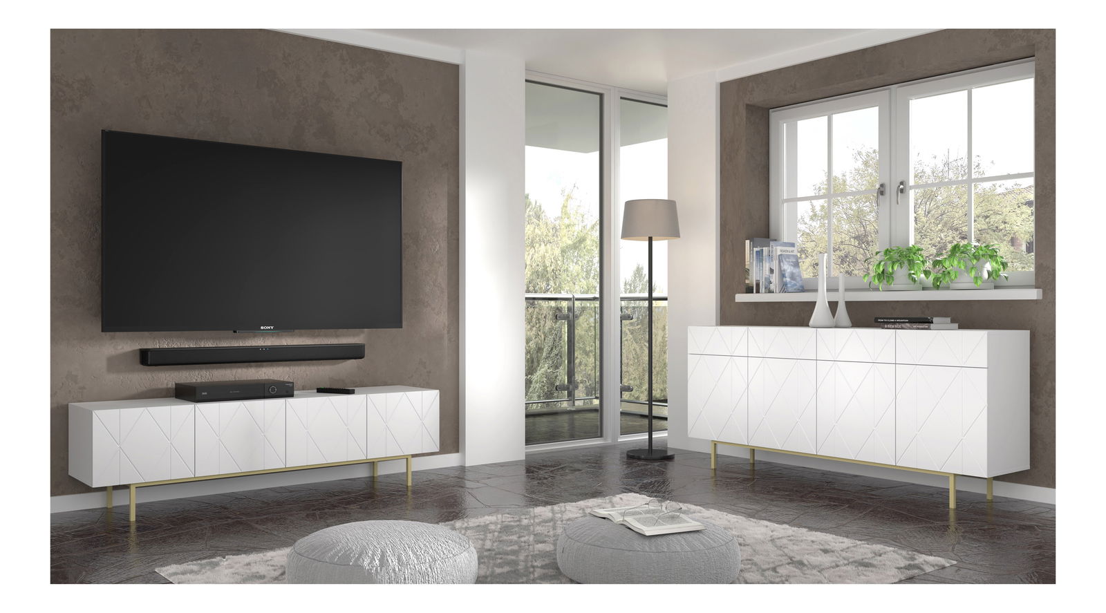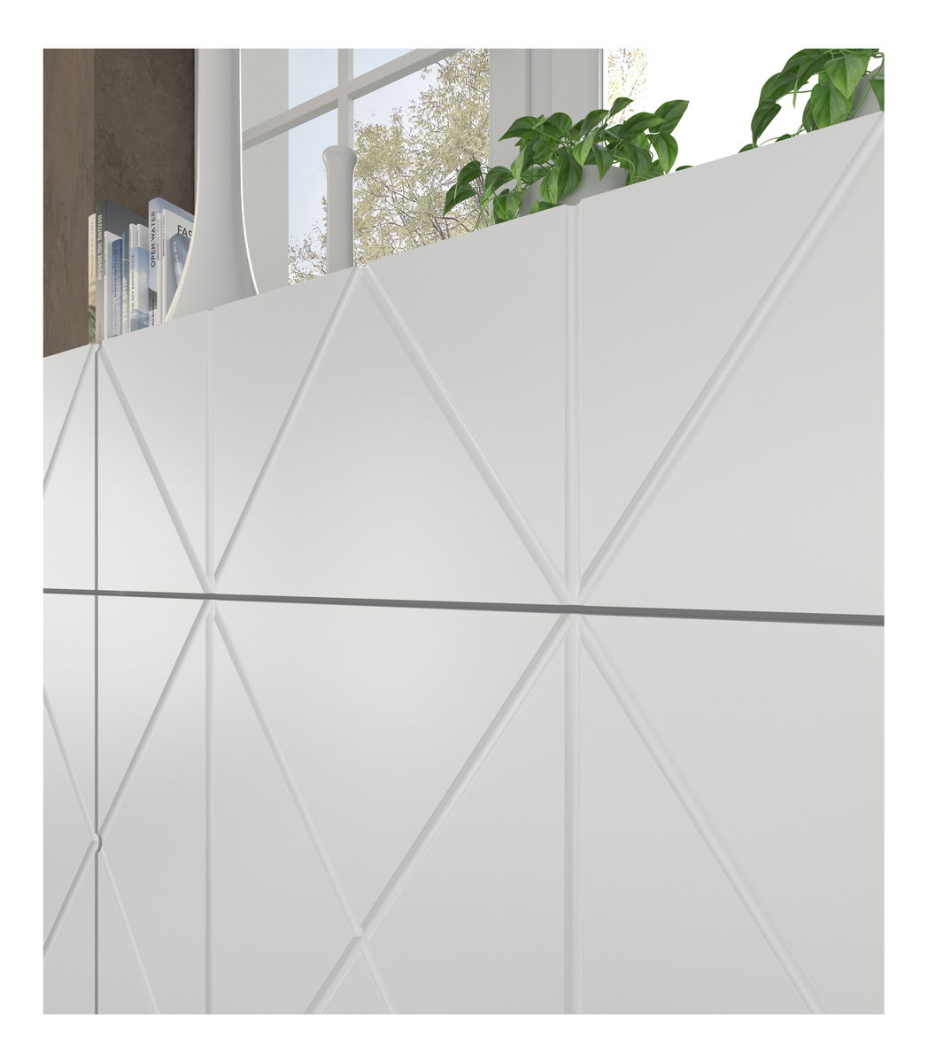 ZobrazitV nábytkové kolekci Koira se pojí elegance s geometrickými vzory, vhodná pro moderní, minimalistické i glamourové interiéry. Kosočtvercové frézování na čelech dodává nezaměnitelný charakter a podtrhuje precizní řemeslné zpracování. Nadčasové barevné provedení v matné bílé barvě přidává univerzální design a flexibilitu v kombinaci s doplňky. Stabilní nohy ve zlaté barvě jen umocňují půvab tohoto nábytku.