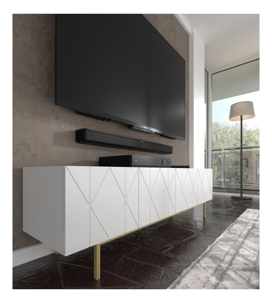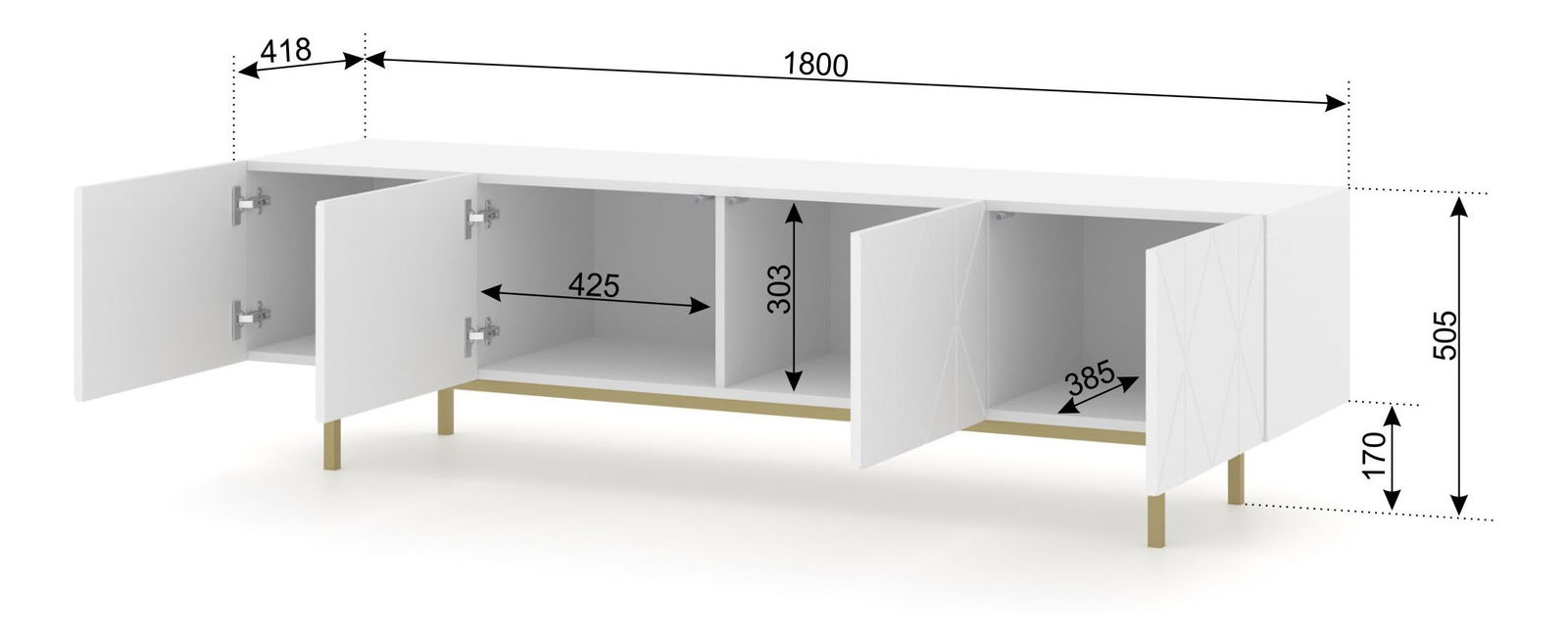 TV stolek/skříňka Koira (bílá matná + zlatá)