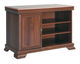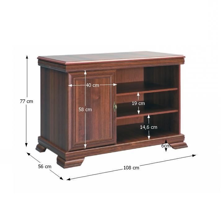 TV stolek z modelové řady sektorového nábytku Kora. Masivní a elegantní, zkrášlí vaše obývací pokoje. Na levé straně se nacházejí dvířka. Má poličky pro vaše AV zařízení. Ozdobné vyřezávané nohy a lišty podkreslují rustikální styl stolku. Barevné provedení je Samoa king.