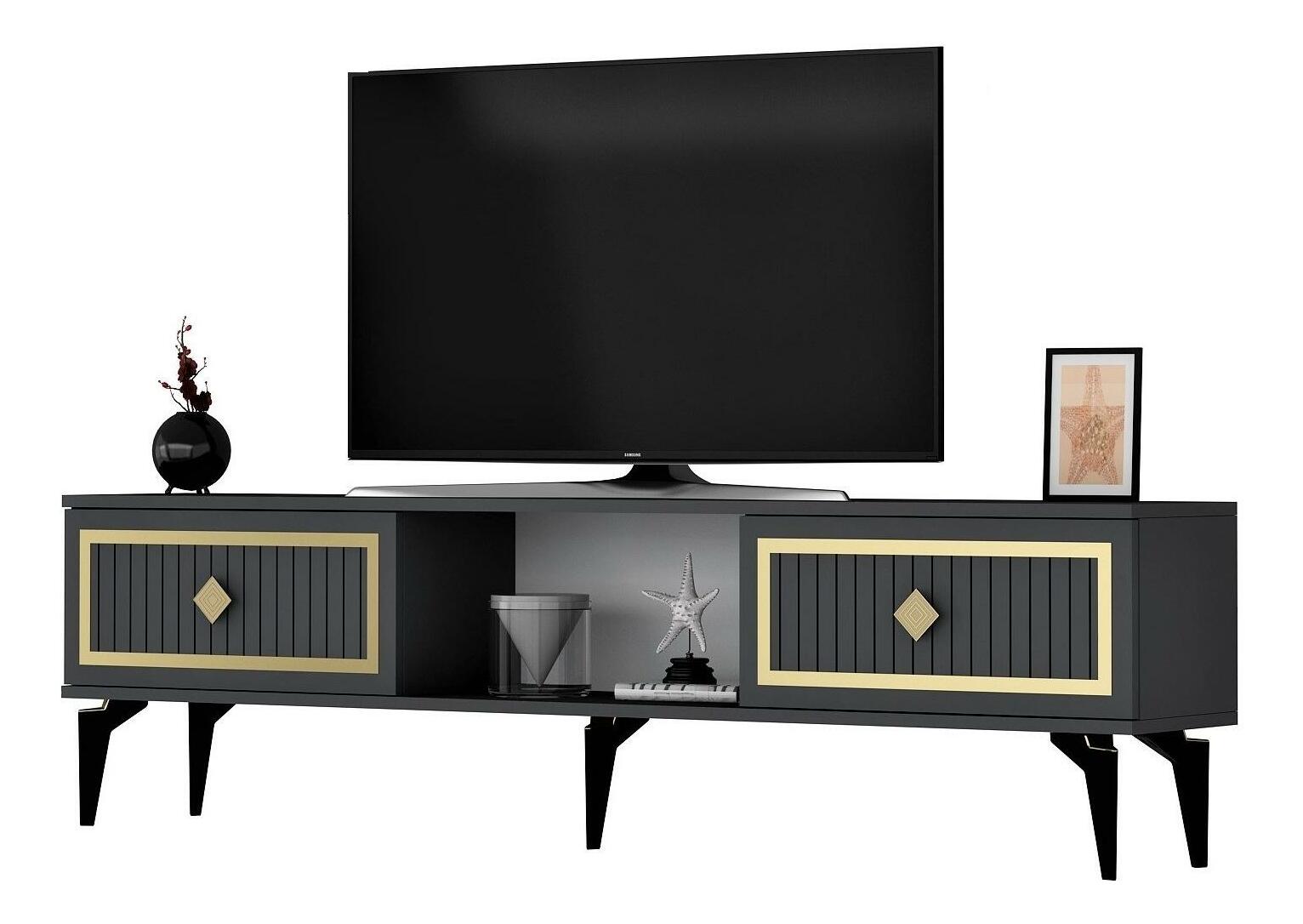 TV stolek/skříňka Kututa 2 (antracit + zlatá)