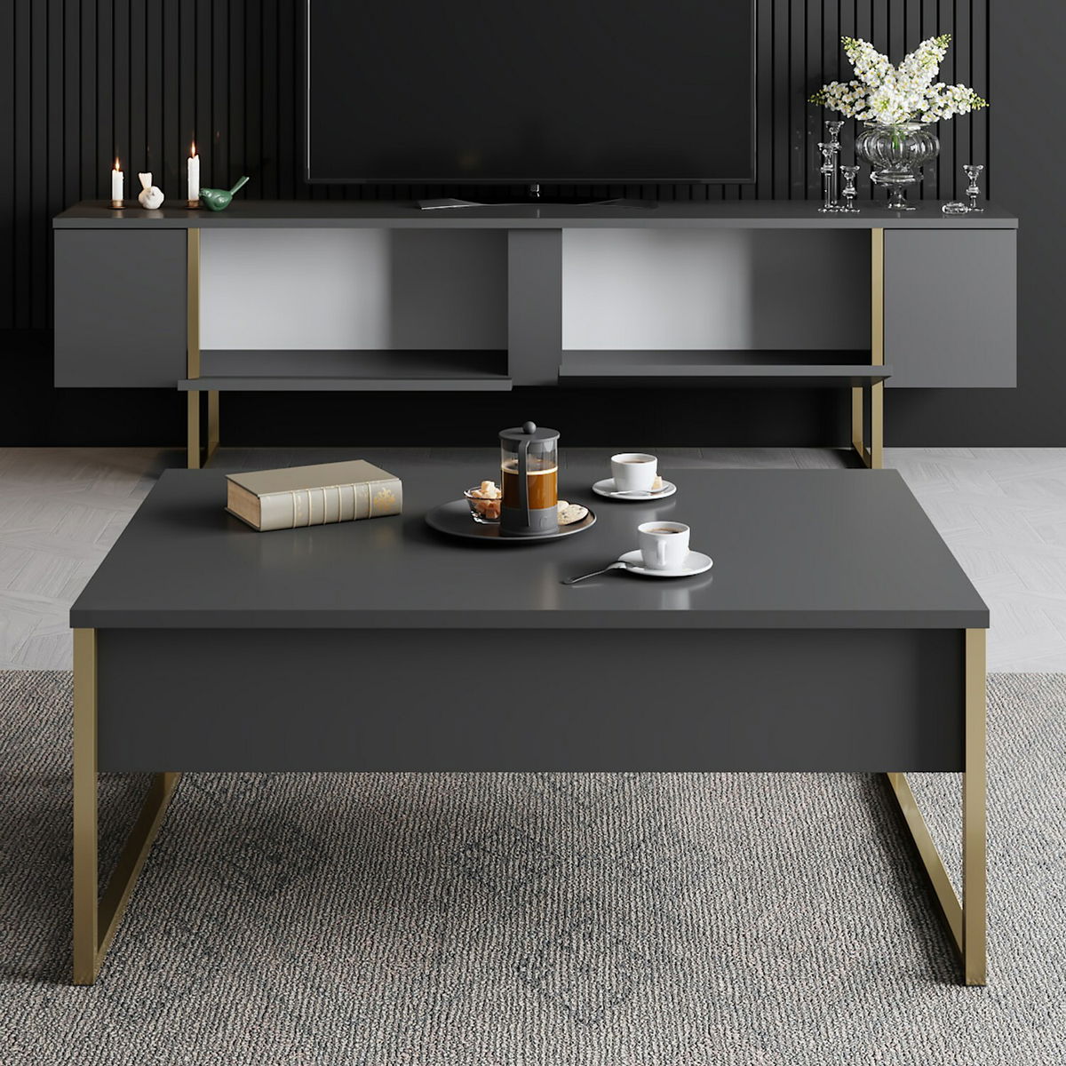 TV stolek/skříňka Luna (Antracit + Zlatá)