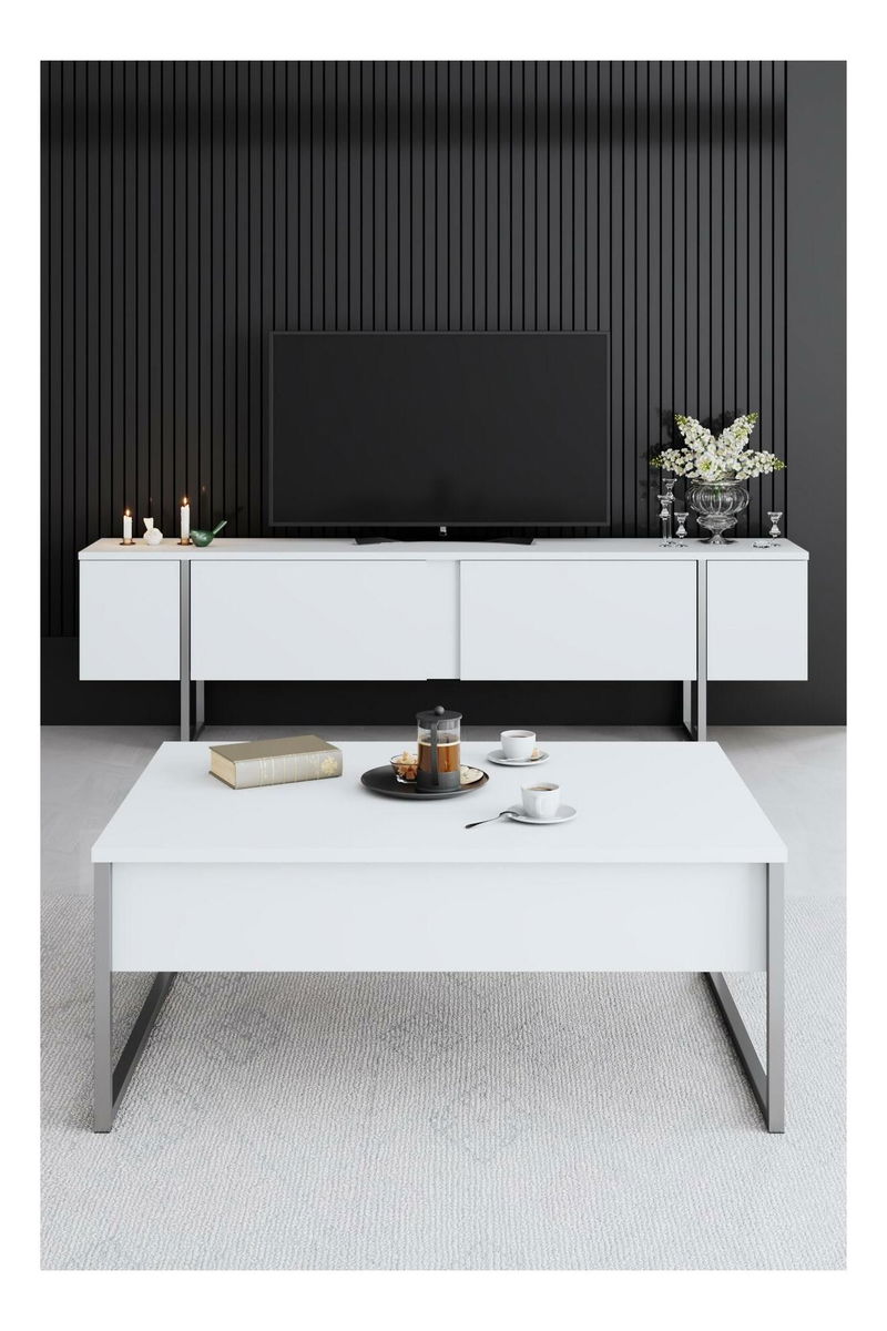 TV stolek/skříňka Luna (bílá + stříbrná)
