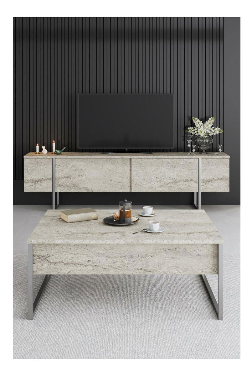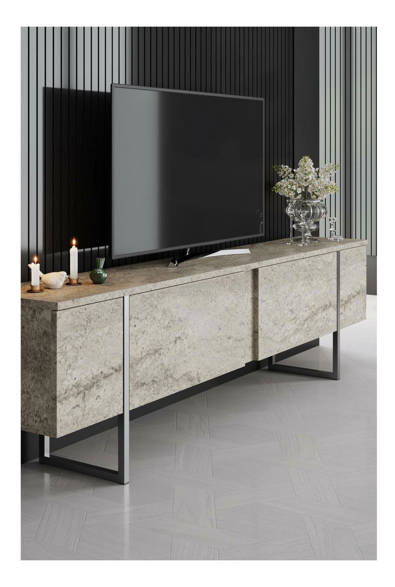 TV stolek/skříňka Luna (travertin + stříbrná)