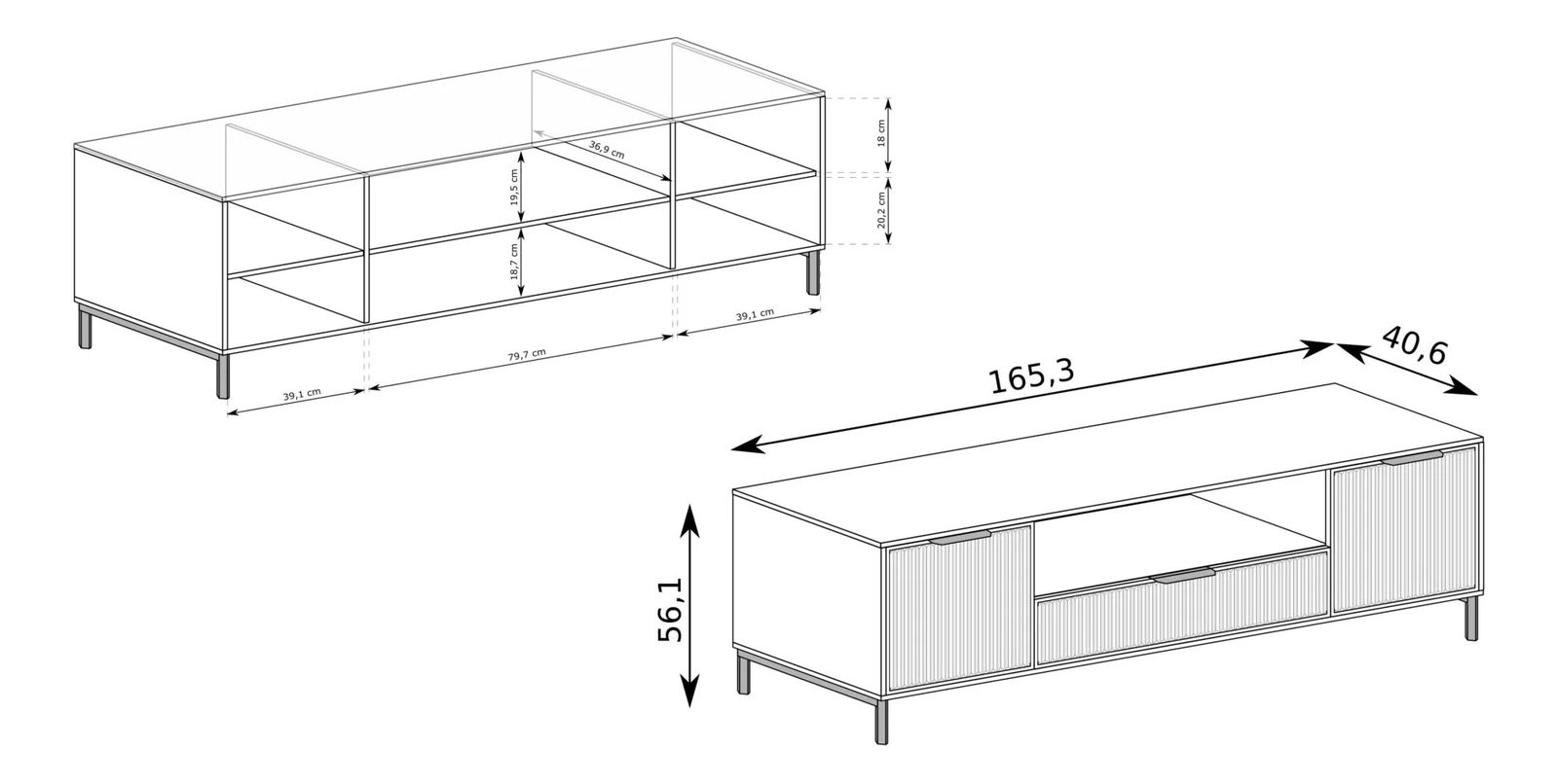 ZobrazitModerní TV skříňka s designovou úpravou. Střední část je praktická polička na set-top box nebo jiné RTV zařízení, pod ní prostorná zásuvka pro různé drobnosti. Po stranách dvě skříňky na další věci. Skříňka v kombinaci s ostatním nábytkem v obýváku vytvoří krásný interiér.