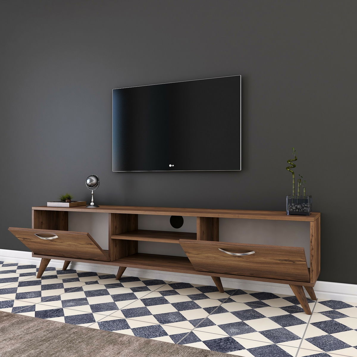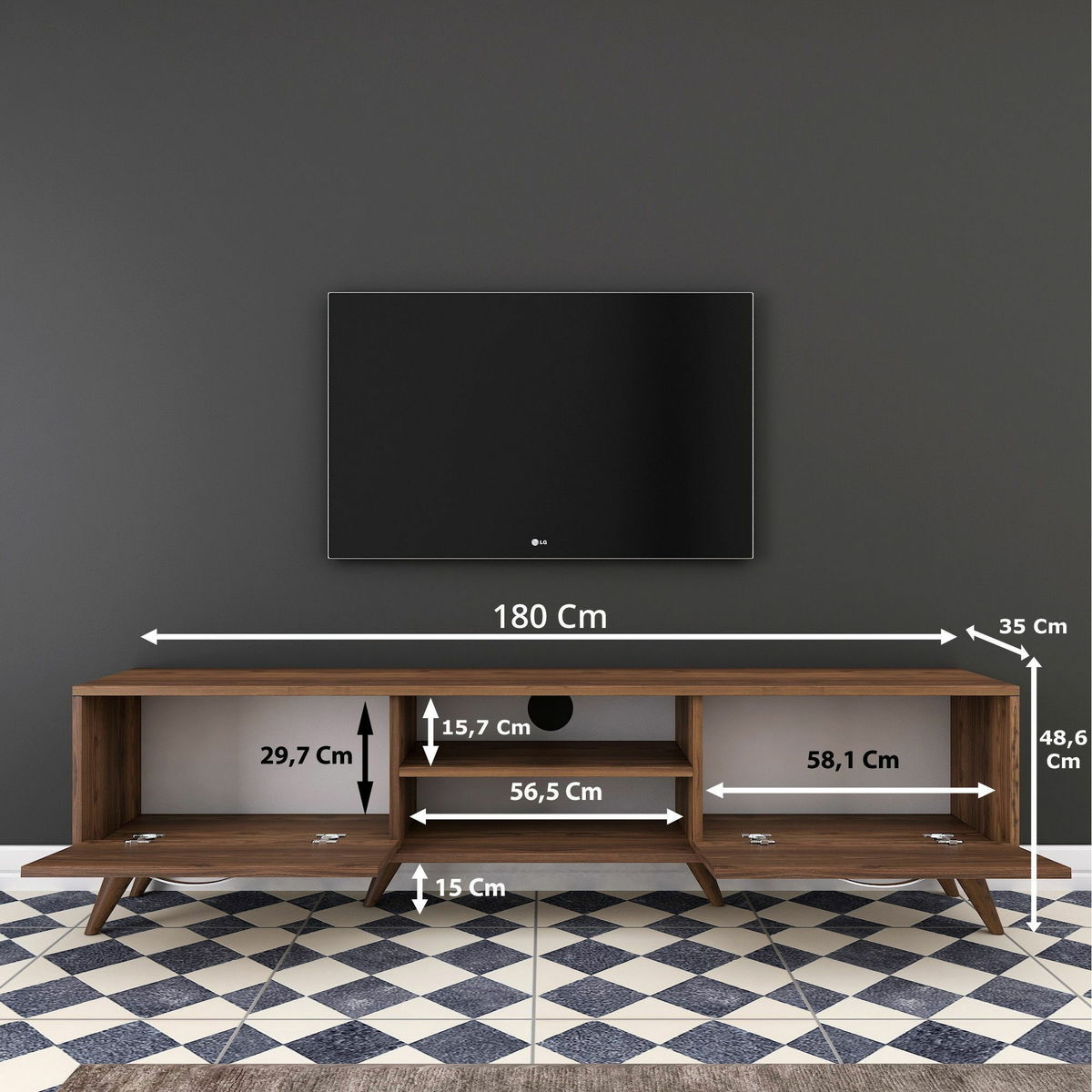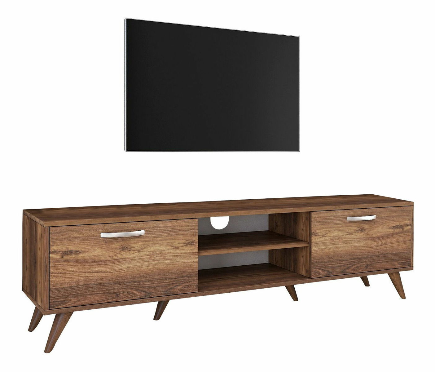 ZobrazitTV stolek/skříňka - Macky (Ořech) je elegantní a praktický kousek nábytku, vhodný do každého obývacího pokoje. S výškou 48 cm, šířkou 180 cm a hloubkou 35 cm poskytuje dostatek místa pro uspořádání vašeho televizoru, herních konzolí, DVD přehrávačů a dalších multimediálních zařízení. Díky kvalitnímu materiálu – ořehovému dřevu – působí skříňka Macky přirozeně a elegantně. Současně poskytuje dostatek úložného prostoru v podobě skříněk a polic pro uschování různých věcí. Svým moderním designem a výbornou funkčností je toto TV stolek/skříňka ideální volba pro každého, kdo hledá stylový a praktický doplněk do svého obývacího prostoru.
