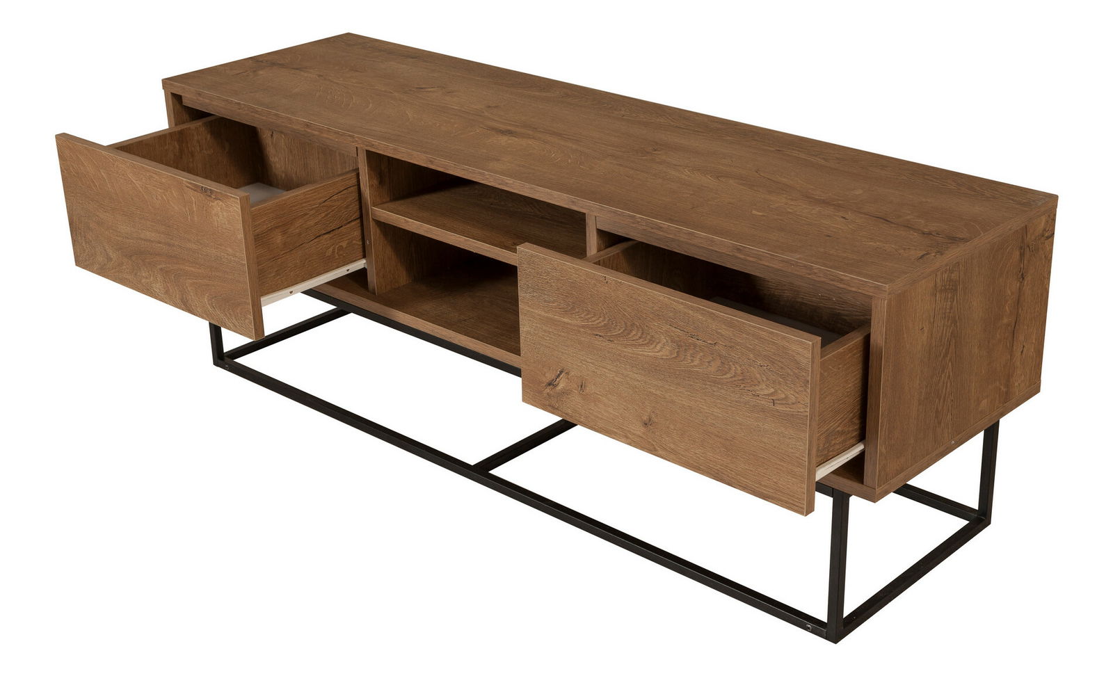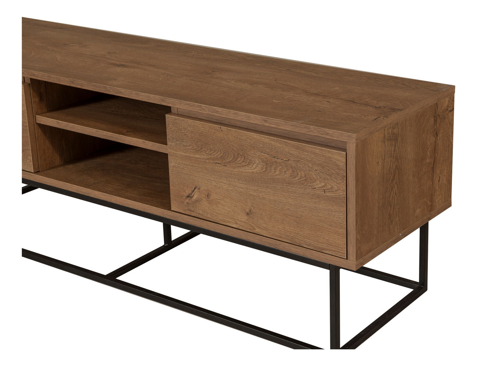 TV stolek/skříňka - Rody 140 o výšce 50 cm, šířce 140 cm a hloubce 40 cm je ideálním doplňkem pro váš televizor. Vyhotovený z kvalitní 100% melaminové desky, tento stolek zaručuje pevnost a odolnost. V kombinaci s ořehovým a černým odstínem vytváří moderní a elegantní vzhled, který se snadno hodí do jakéhokoli interiéru. S dostatečným prostorem pro uložení vašich zařízení a příslušenství, tento TV stolek/skříňka je praktický a funkční. Zkrášlete svůj obývací prostor a získejte stylové úložné řešení s tímto Rody TV stolkem/skříňkou.