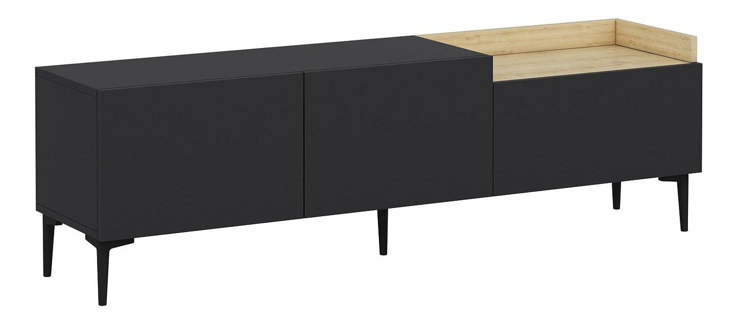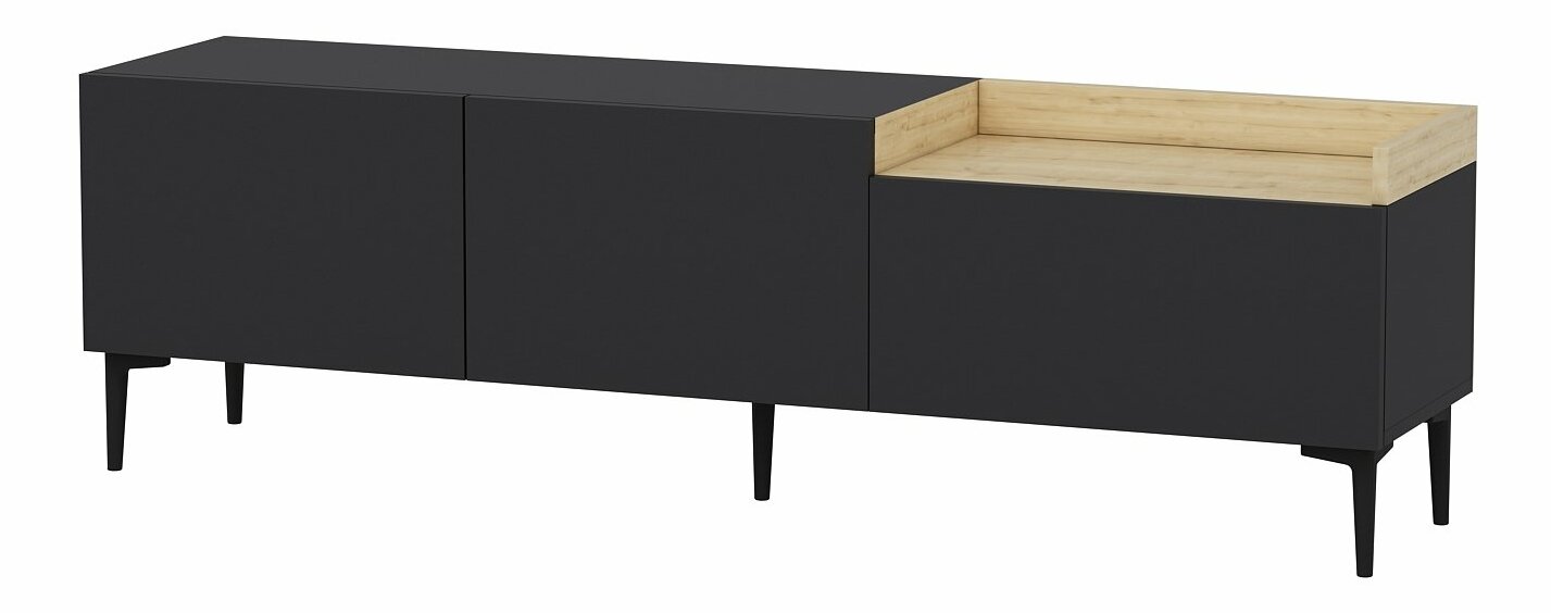 ZobrazitTV stolek/skříňka - Maja je praktickým a stylovým doplňkem pro váš domov. S výškou 48 cm, šířkou 160 cm a hloubkou 37 cm, tento antracitový stolek/skříňka poskytuje dostatek místa pro váš televizor, herní konzoli a další zařízení. Vyrobeno z kvalitní 100% melaminové desky, zajišťuje trvanlivost a odolnost vůči poškrábání a opotřebení. Svým moderním designem a praktickými úložnými prostory je stolek/skříňka Maja perfektní volbou pro uspořádání a estetické sladění vašeho obývacího prostoru.