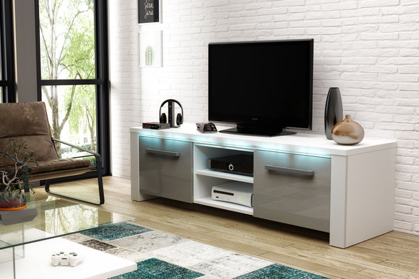 TV stolek/skříňka Marilee (bílá matná + šedý lesk)