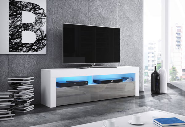 TV stolek/skříňka Mark (bílá matná + šedý lesk)