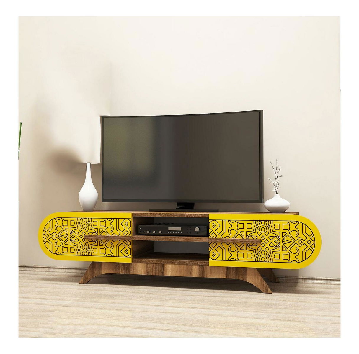 TV stolek/skříňka Mekebu 3 (ořech + žlutá)