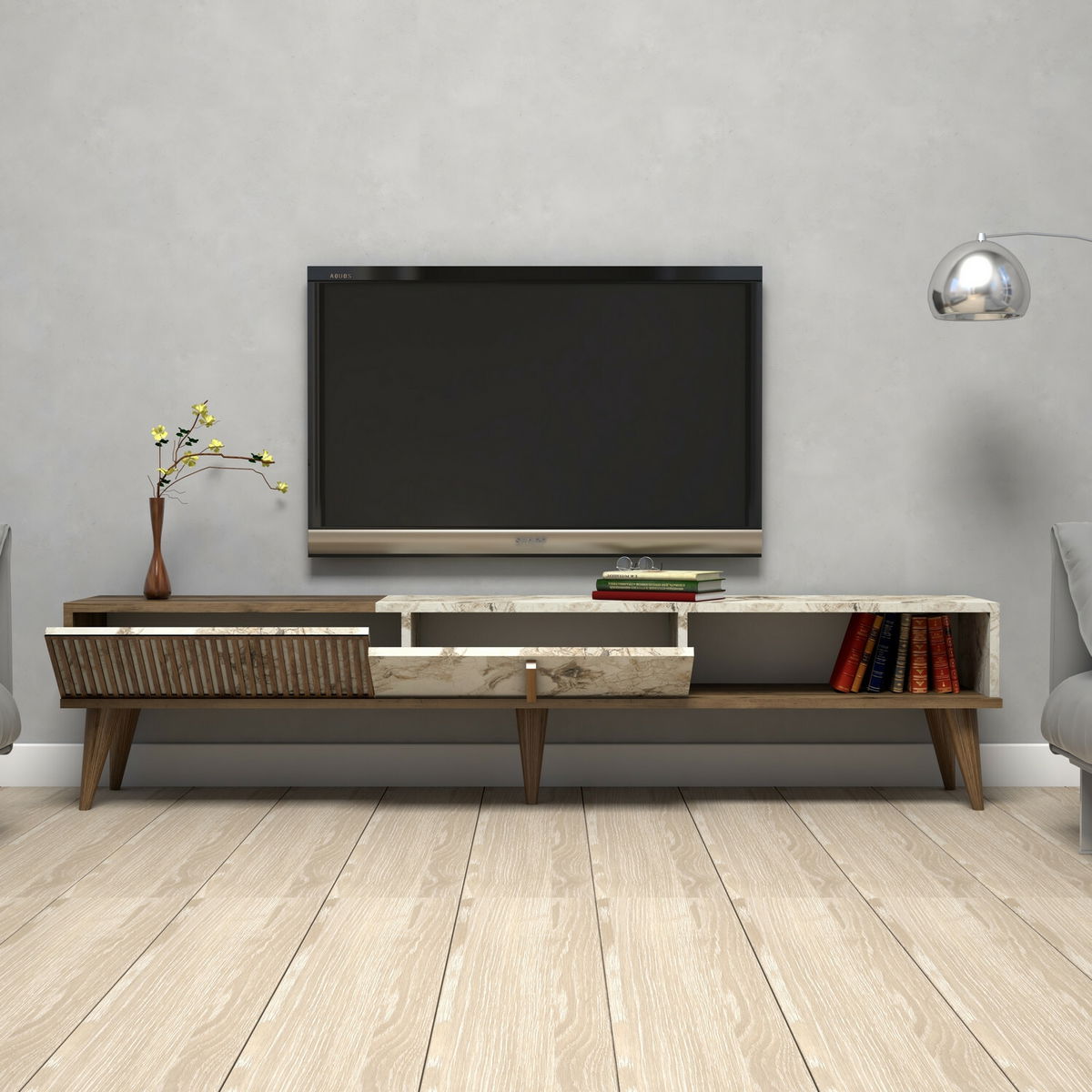 TV stolek/skříňka Millano 1 (Ořech + Bílá)