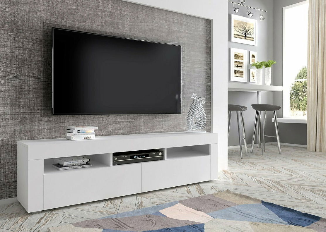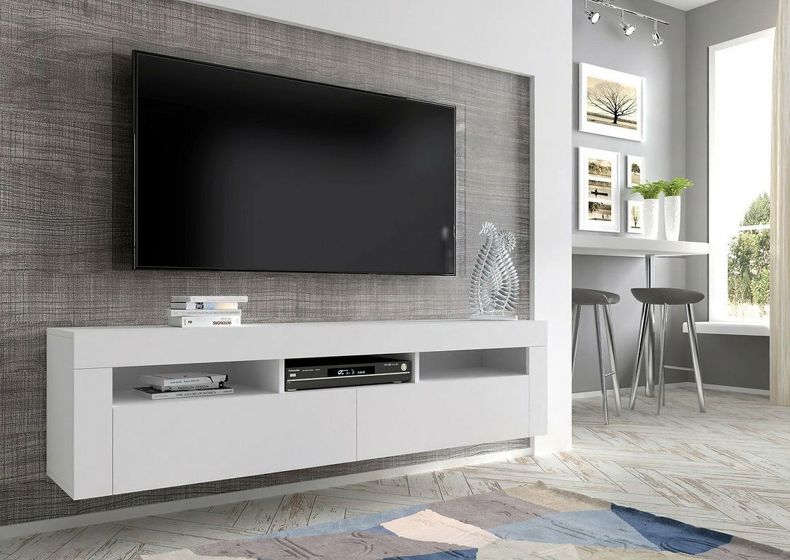 ZobrazitTV skříňka Moderno je univerzální kus nábytku, který lze zavěsit na zeď nebo umístit na podlahu. Při montáži si můžete vybrat nejvhodnější verzi pro vás. Hlavními znaky skříňky jsou funkčnost, atraktivní vzhled a modernistický styl. Geometrický tvar dodává celku moderní vzhled, který navíc zdůrazňují módní barvy. Tři otevřené police lze použít k umístění herní konzole, set-top boxu, dálkových ovladačů, knih nebo jiných drobností a uzamykatelné přihrádky poslouží jako další úložný prostor.