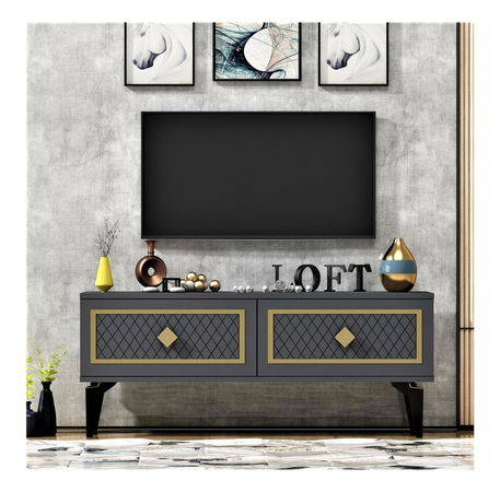 TV stolek/skříňka Mukanu (antracit + zlatá)