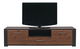 Elegantní TV stolek s úložnými prostory po stranách a jednou poličkou na audio/video zařízení uprostřed v horní části.