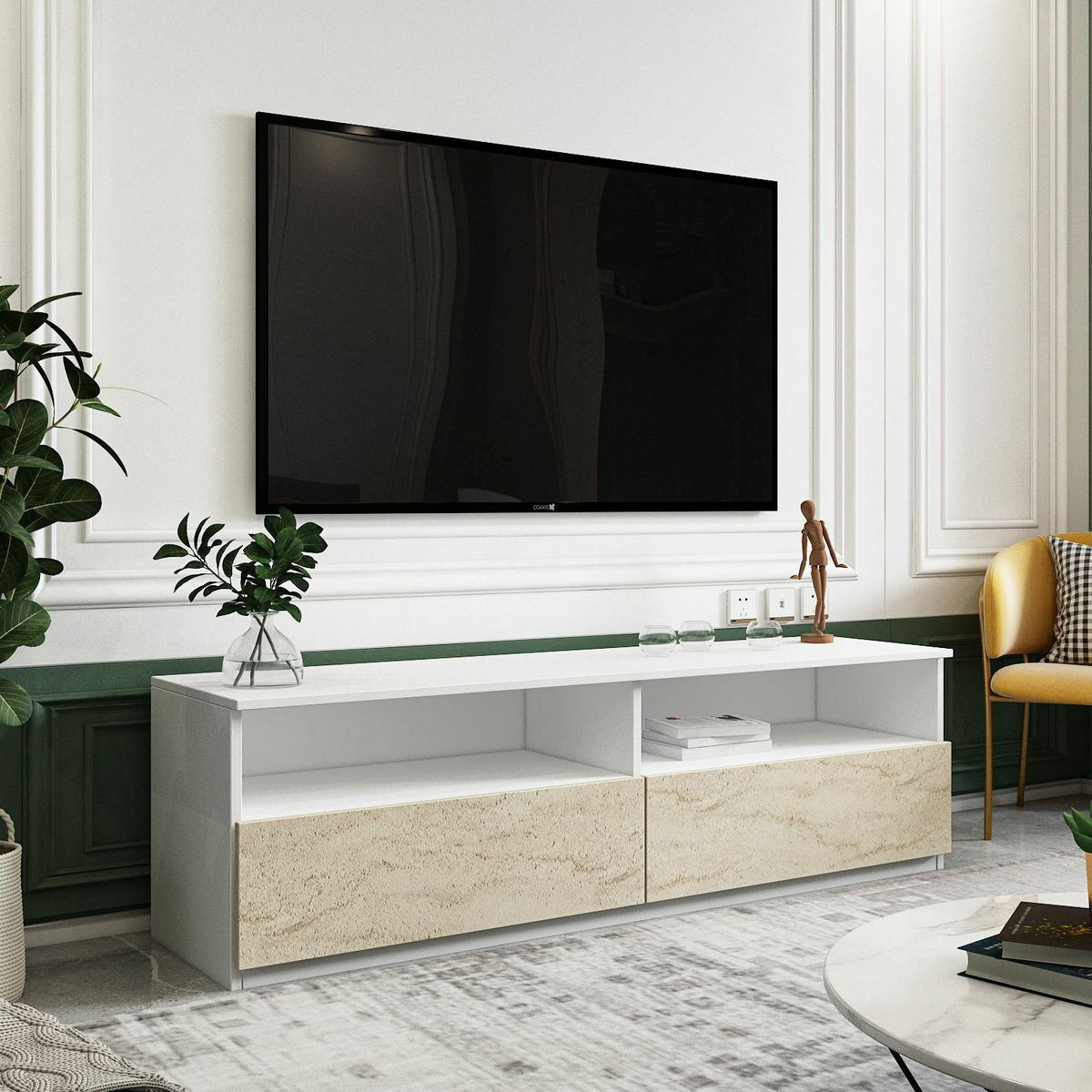 TV stolek/skříňka Naturalia T (bílá + travertin)