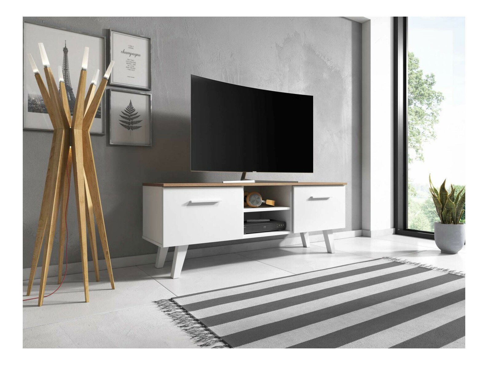 TV stolek/skříňka Neal (bílá matno + craft tobaco)