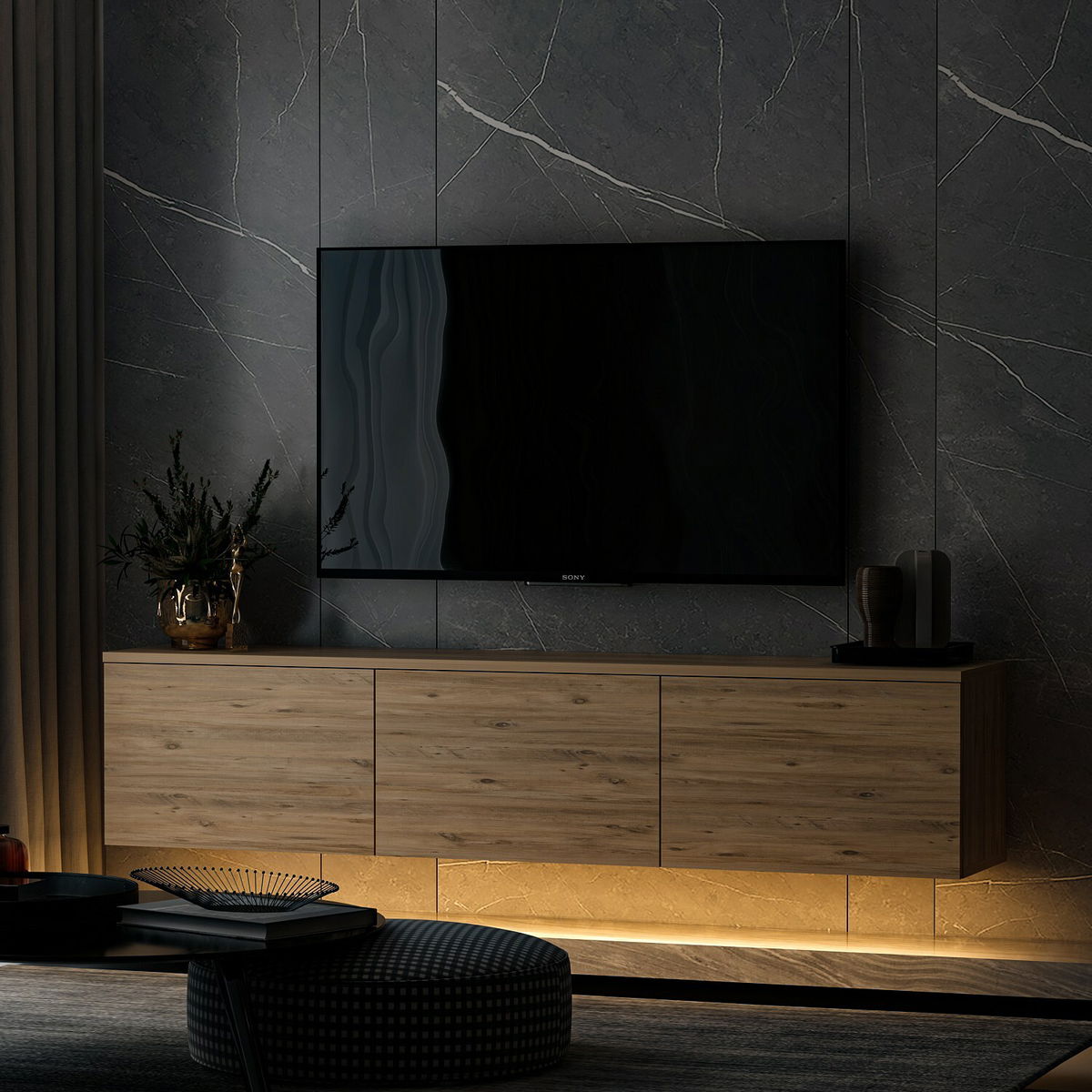 TV stolek/skříňka Neola 1 (borovice) (s osvětlením)