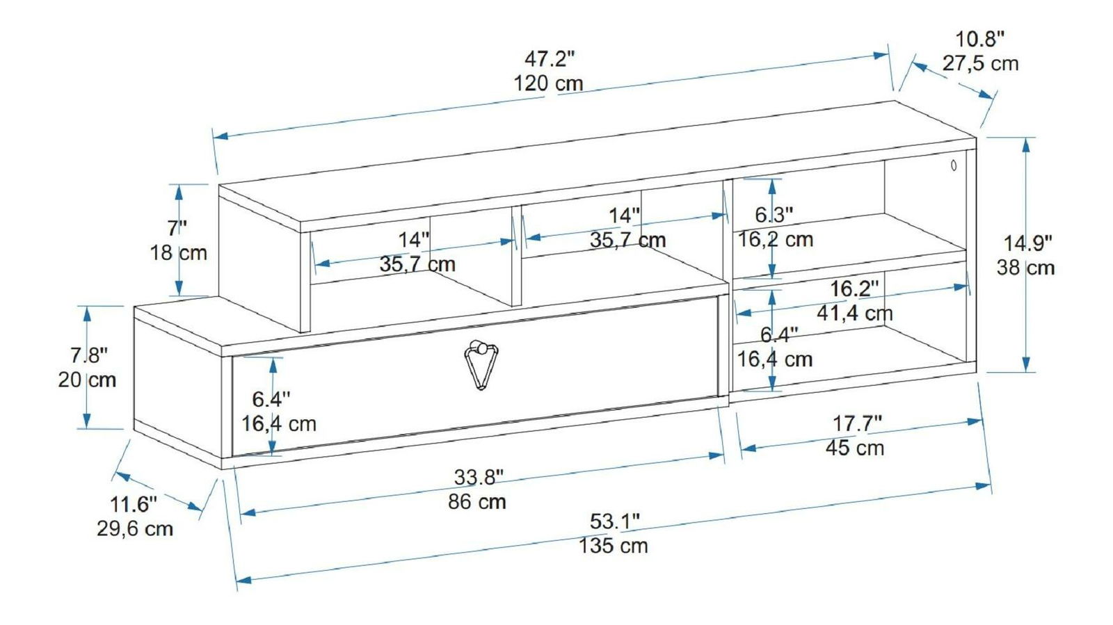 Rozměr první části stolku: Výška: 38 cm Šířka: 120 cm Hloubka: 27,5 cm