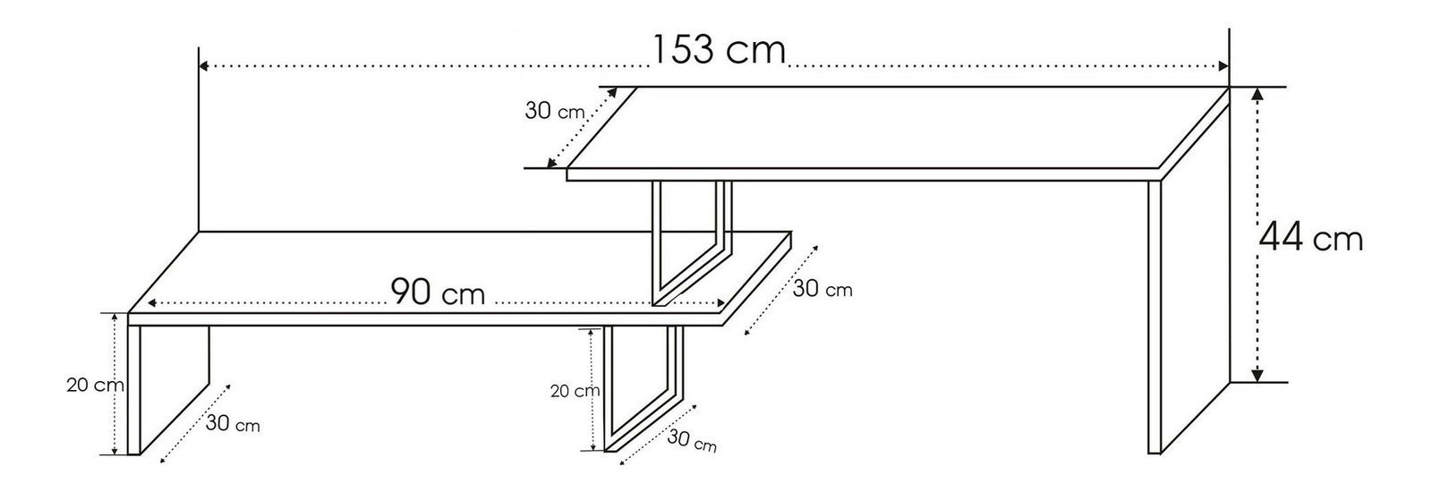 celkové rozměry: šířka: 153 cm výška: 44 cm hloubka: 30 cm