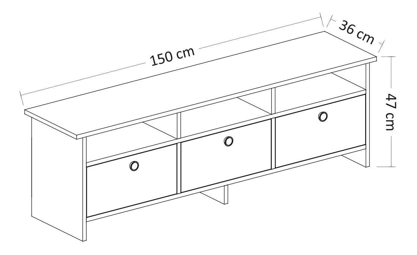 tloušťka: 18 mm, šířka: 150 cm, výška: 47 cm, hloubka: 36 cm