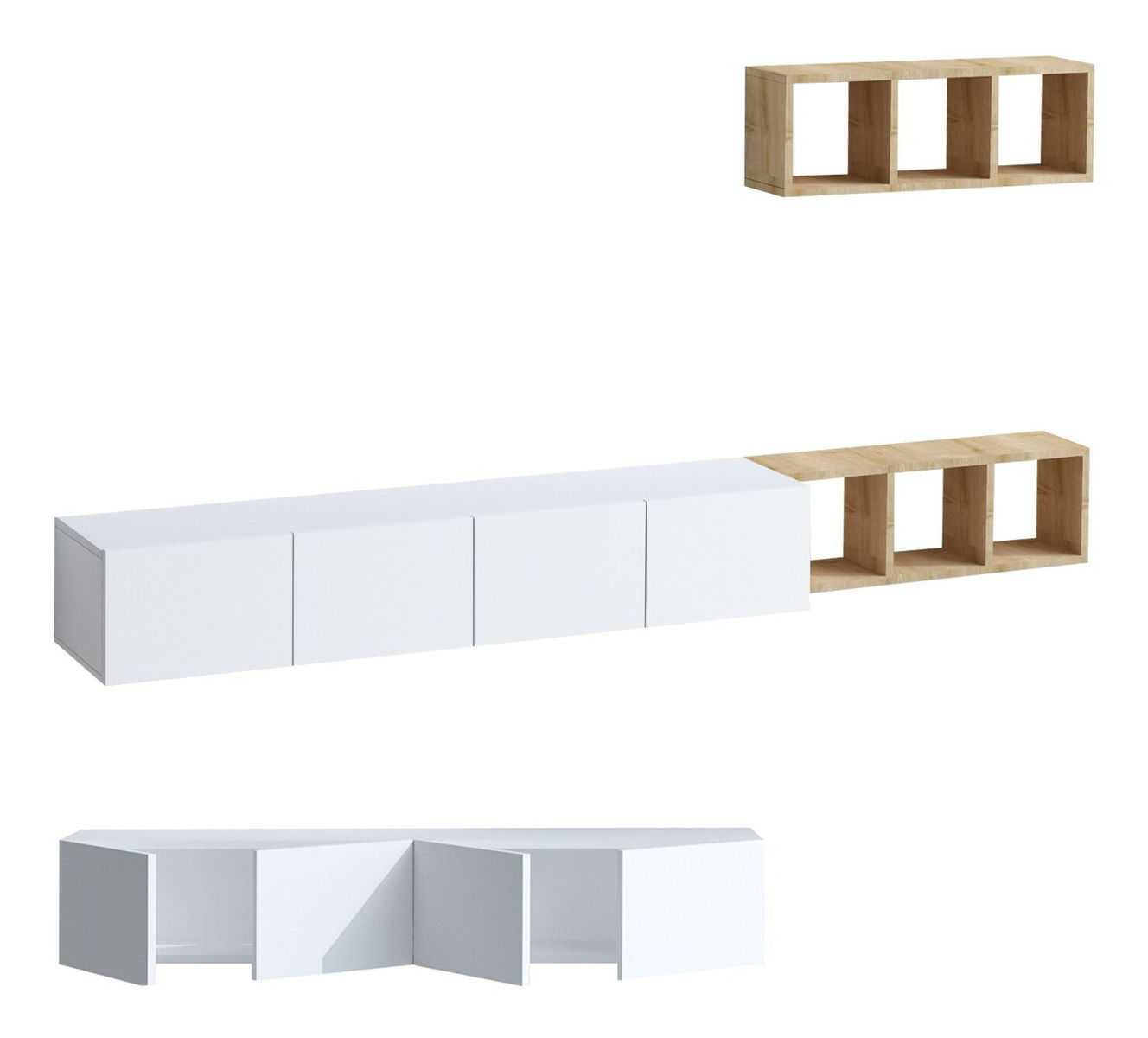 ZobrazitObývací stěna Pria je ideálním doplňkem pro váš obývací prostor. S výškou 25 cm, šířkou 215 cm a hloubkou 32 cm je dostatečně velká na umístění vašeho televizoru a dalších zařízení. Tato stěna je vyrobena z kvalitního bílého a dubového dřeva, což jí dodává elegantní vzhled. Disponuje dostatečným množstvím úložného prostoru, včetně polic a zásuvek, které vám umožní udržet váš prostor uklizený a organizovaný. Svým moderním designem a kvalitním zpracováním je obývací stěna Pria skvělou volbou pro každého zákazníka, který hledá praktické a krásné řešení pro svůj obývací prostor.