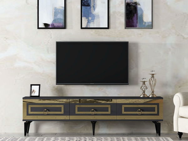TV stolek/skříňka Pemava 2 (antracit + zlatá)