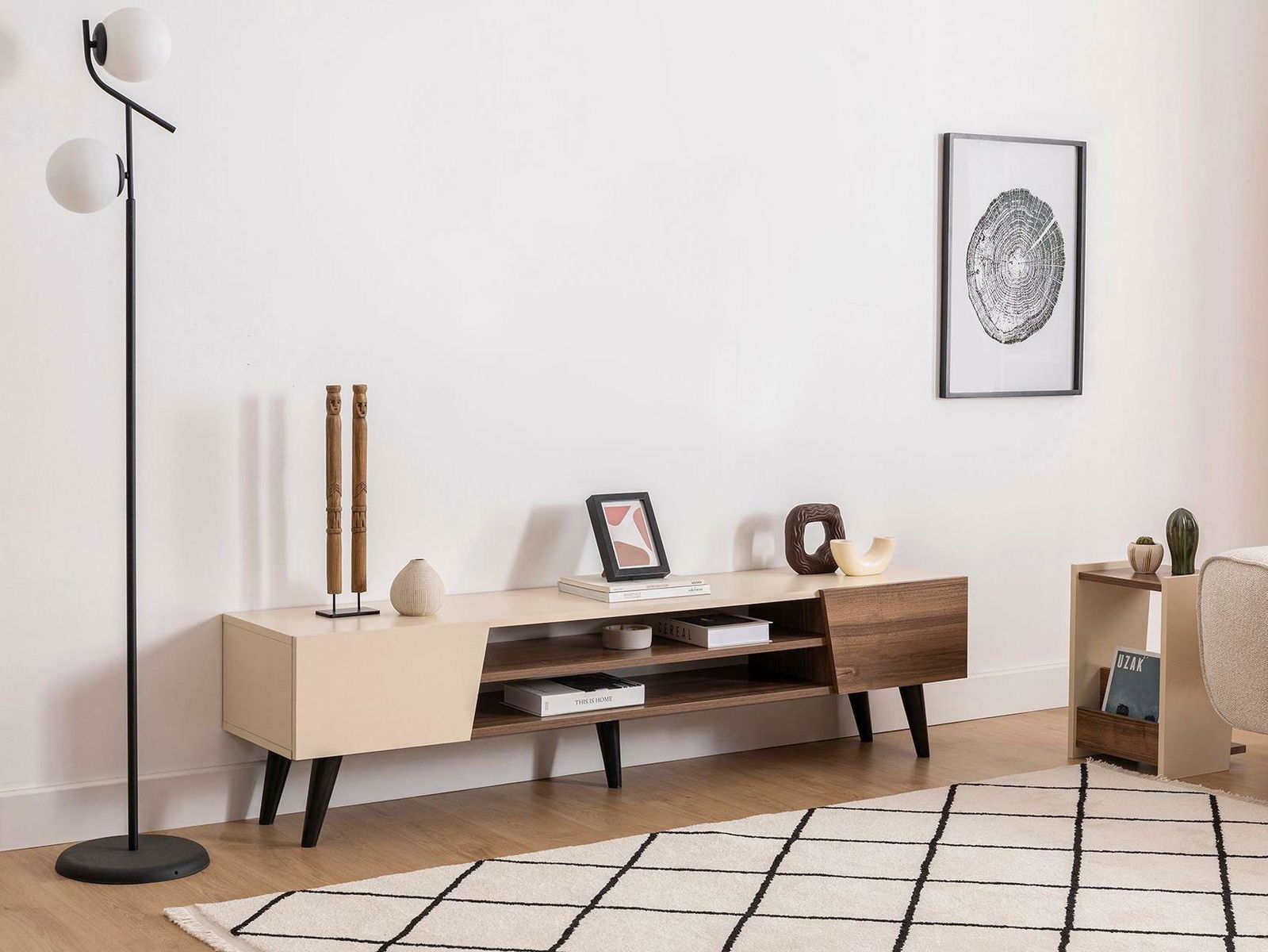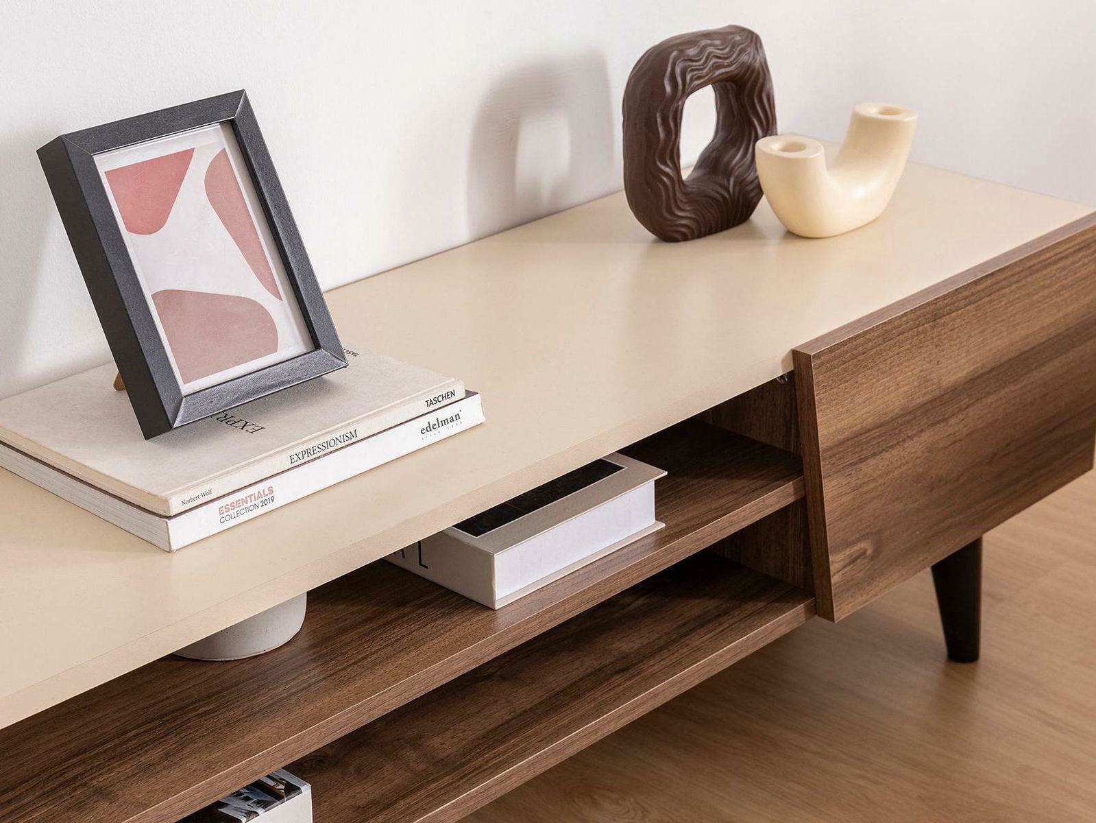 TV stolek/skříňka Pitudu (ořech + béžová)